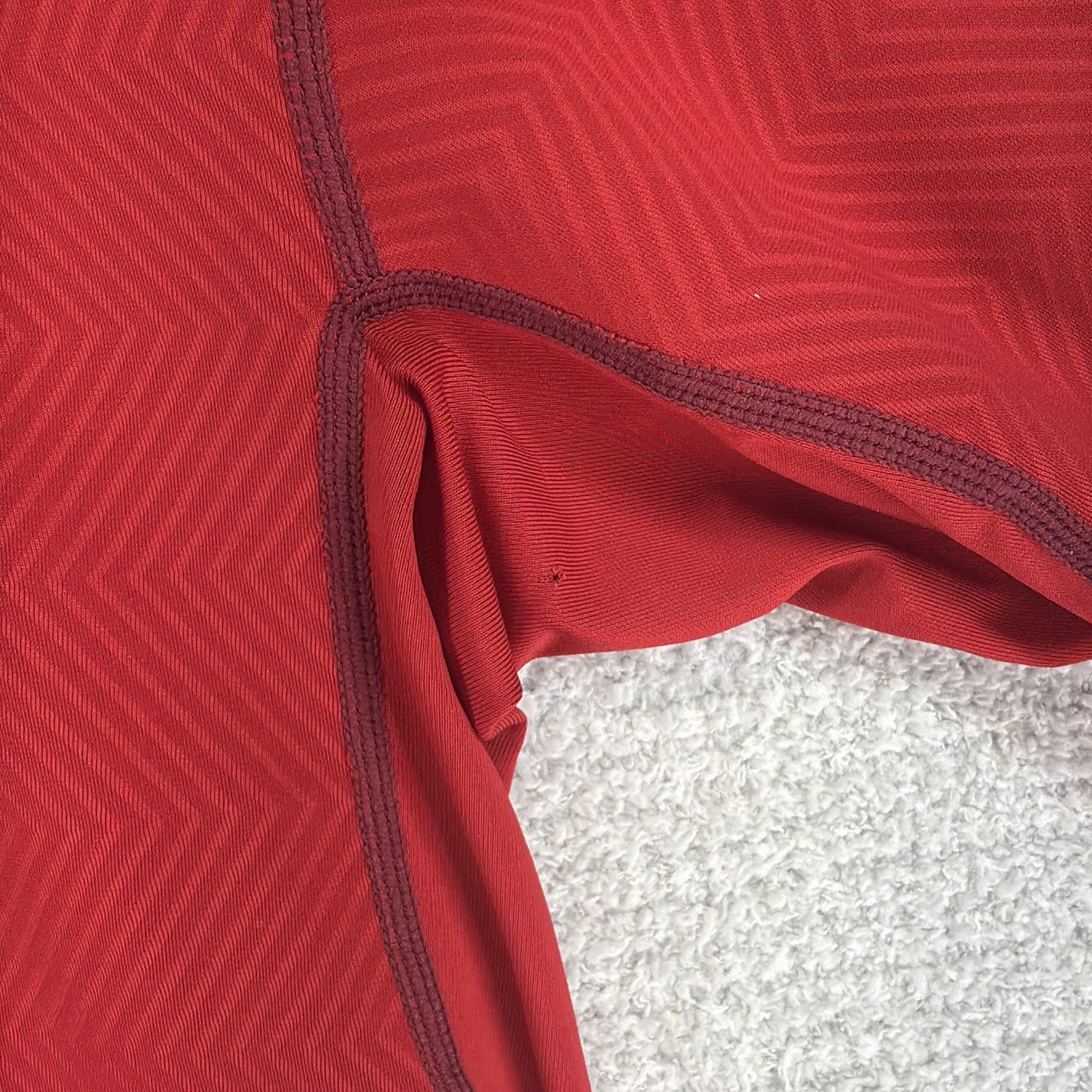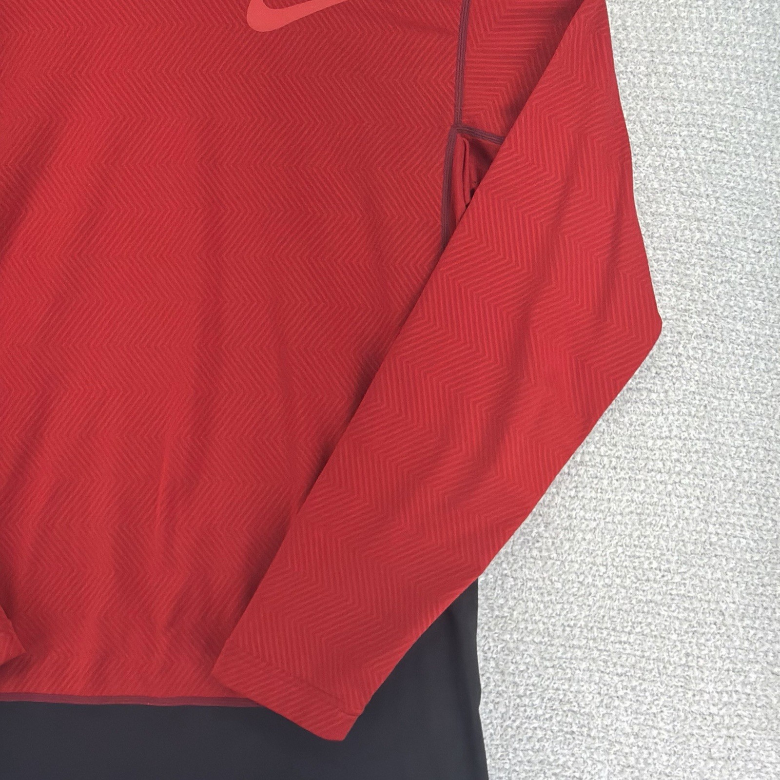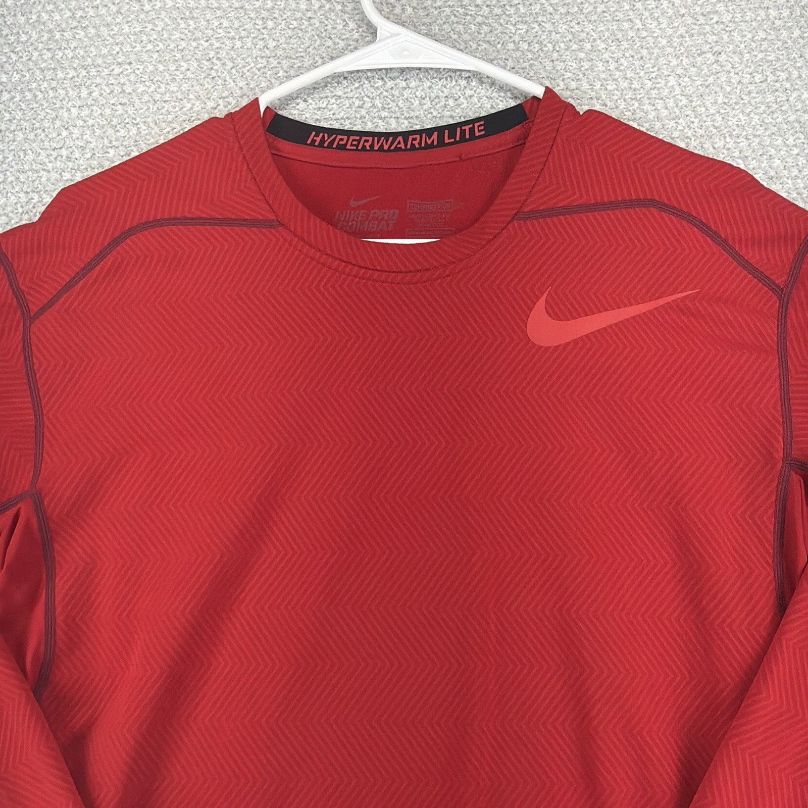 Nike Pro Combat Shirt Mens 2XL Red Hyperwarm Dri-Fit BaseLayer Compression Small hole in left underarm and light stain on bottom left front. Please see photos for condition and measurements. Item shipped via USPS Ground Advantage