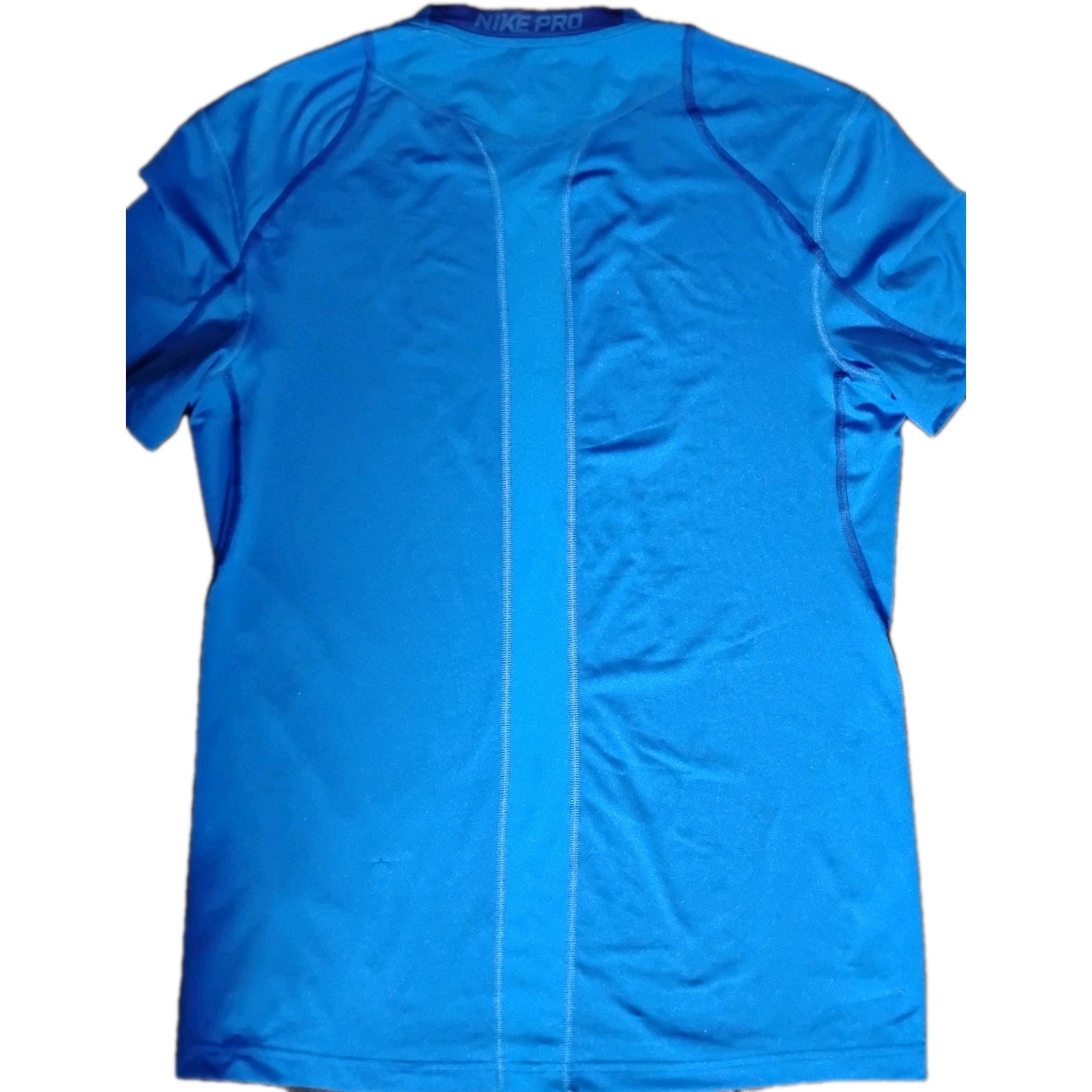 This Nike shirt for men is a small, blue Nike Pro Swoosh fitted lightweight short sleeve top perfect for activewear. The shirt features a crew neck and pullover closure, making it easy and comfortable to wear during activities like gym training or running. Made with Nike Dri-Fit technology, this shirt is designed for athletic fit and performance, allowing for breathability and moisture-wicking during intense workouts.