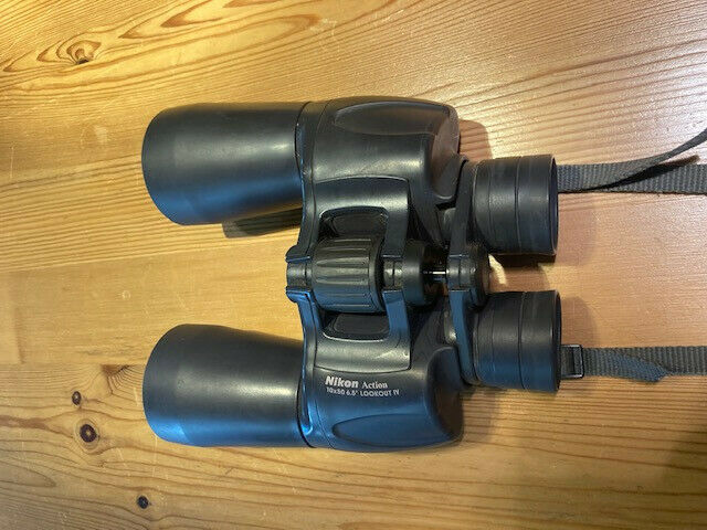 Nikon Action Lookout IV 10x50 binoculars. These are in excellent condition and work perfectly. This is just the binoculars. No original box, case, lens covers, etc., so what you see in the photos is what you will receive. I will include the strap we always used, which is from a camcorder we owned. Shipped via USPS Priority Flat Rate Box.
