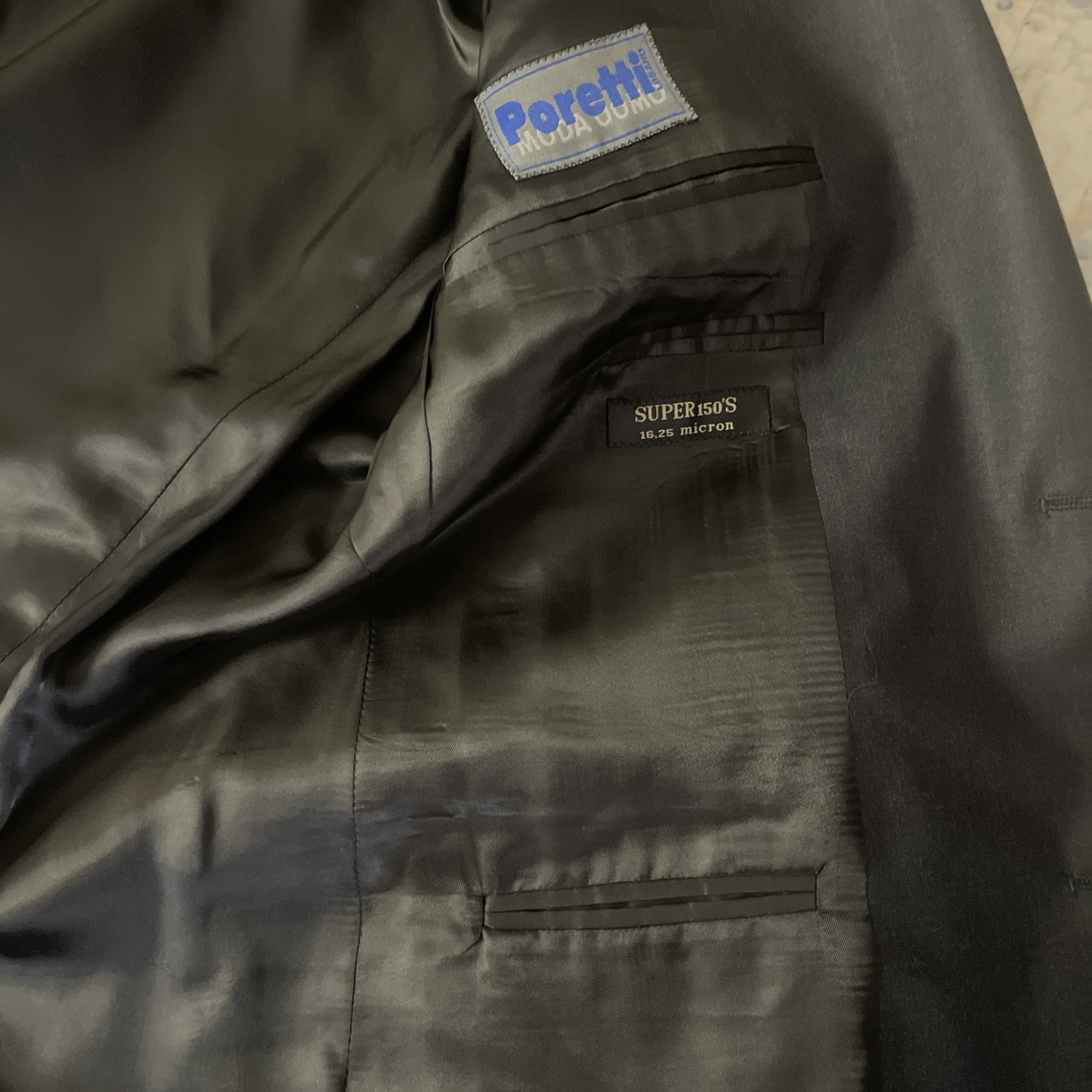 The jacket is by Nino Danieli, a premium menswear line from Verona, Italy, and part of the Corneliani Group. They are known for high-end Italian tailoring. The inner tag says, “SUPER 150’S – 16.25 micron” which is 100% ultra-fine Italian sheep’s wool. The measurements are in the picture and would generalize the size to be a “Men’s Large”. It was recently dry cleaned and in excellent condition. Don’t be afraid to message me with any questions.