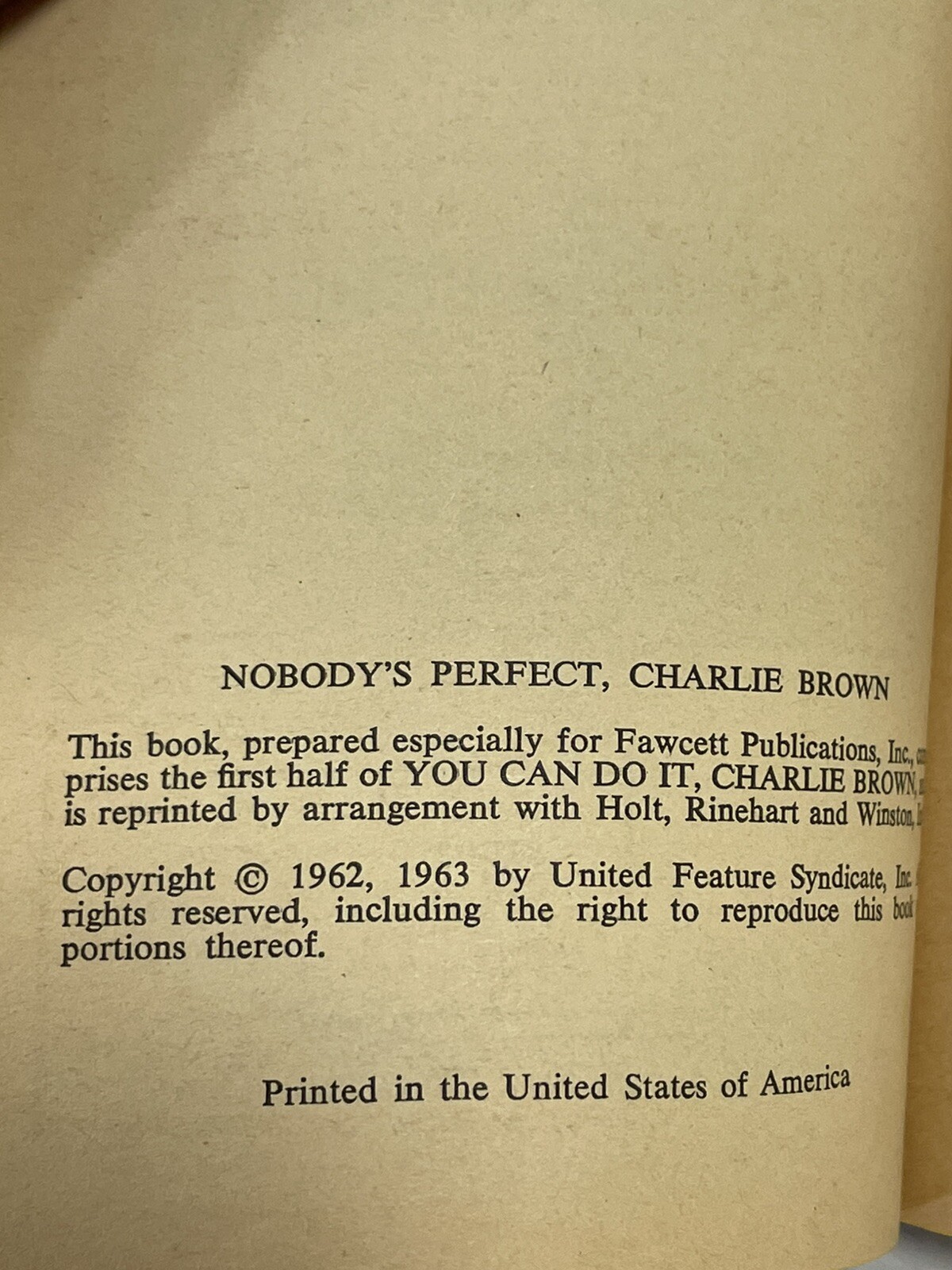 Nobody's Perfect Charlie Brown Charles M Schulz paperback 1963 edition