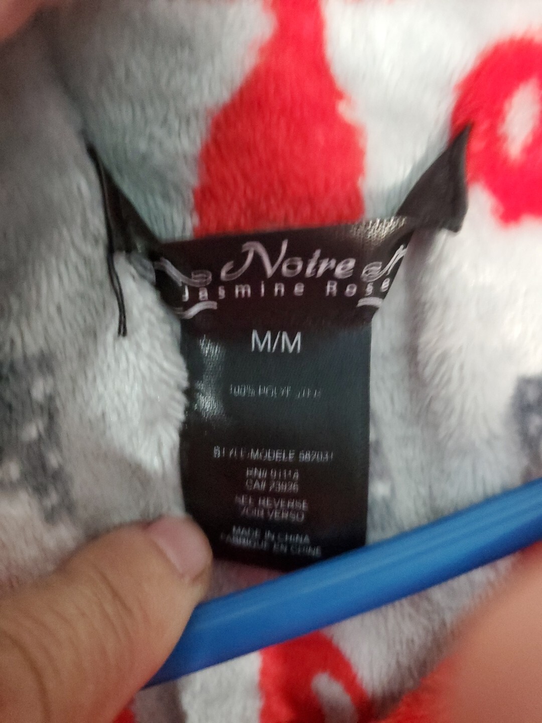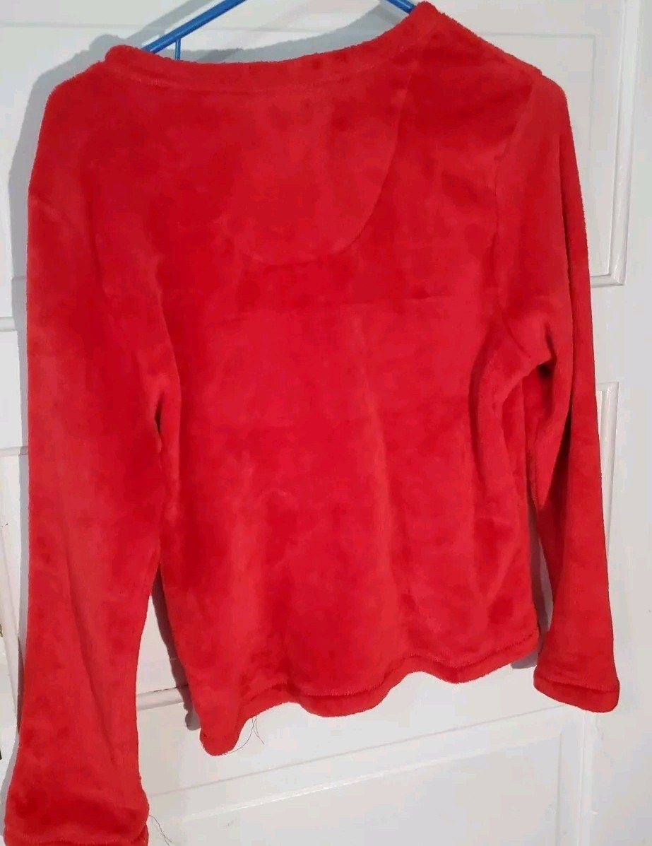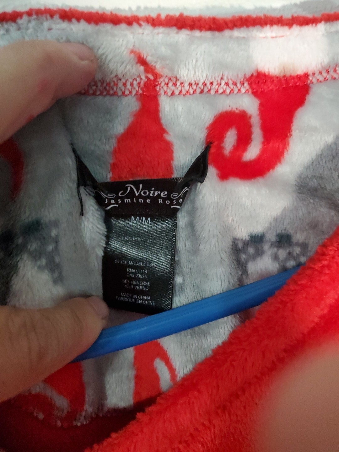 Noire Jasmine Rose Pajamas Top Fleece Red Gnome Print Inside Womens Med Soft