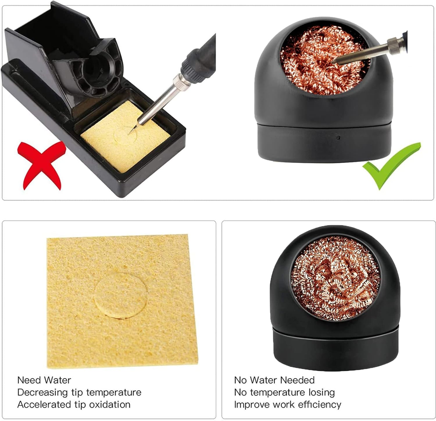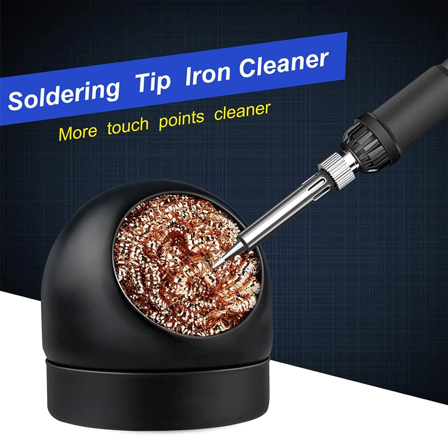 This solder tip cleaner is a game-changer! No more wet sponges—just swirl the hot iron in the brass balls, and it cleans instantly without cooling the tip. The dome design keeps stray solder bits contained, so my workspace stays tidy. Made of durable brass, it works smoothly and lasts long. Perfect for soldering projects—saves time and keeps tips in great shape! Highly recommend for anyone who works with solder regularly.
