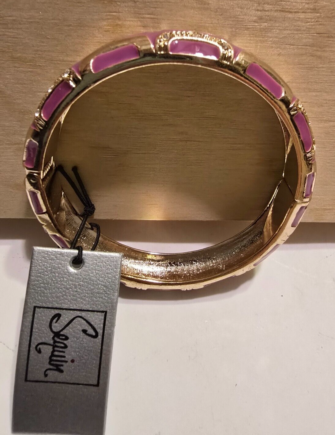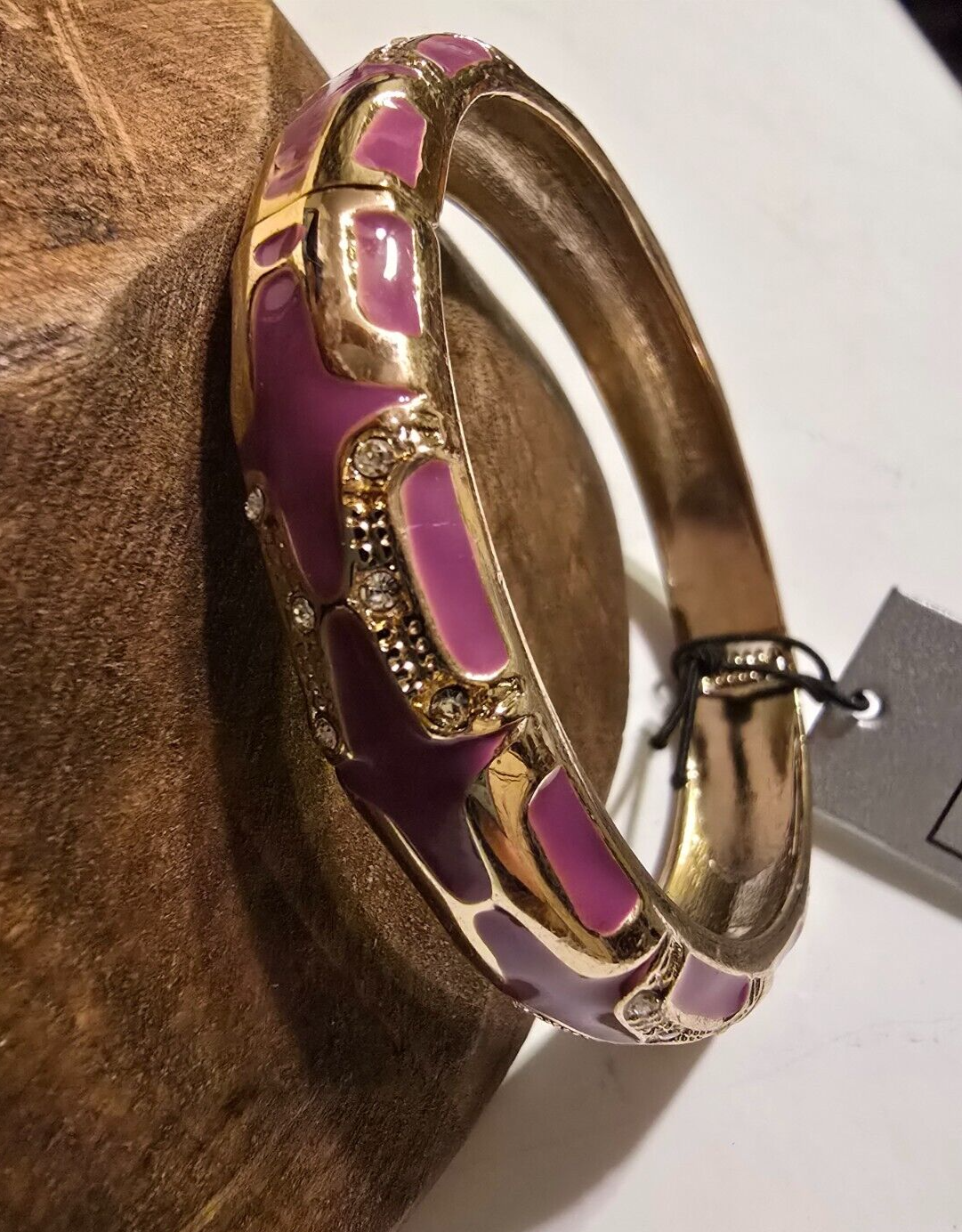 This bracelet is absolutely stunning! The mauve and gold tones blend beautifully, and the rhinestones add just the right amount of sparkle. The hinged design makes it easy to put on, and the quality feels luxurious. Perfect for dressing up any outfit—love that it’s new with tags! A must-have for any jewelry collection.
