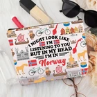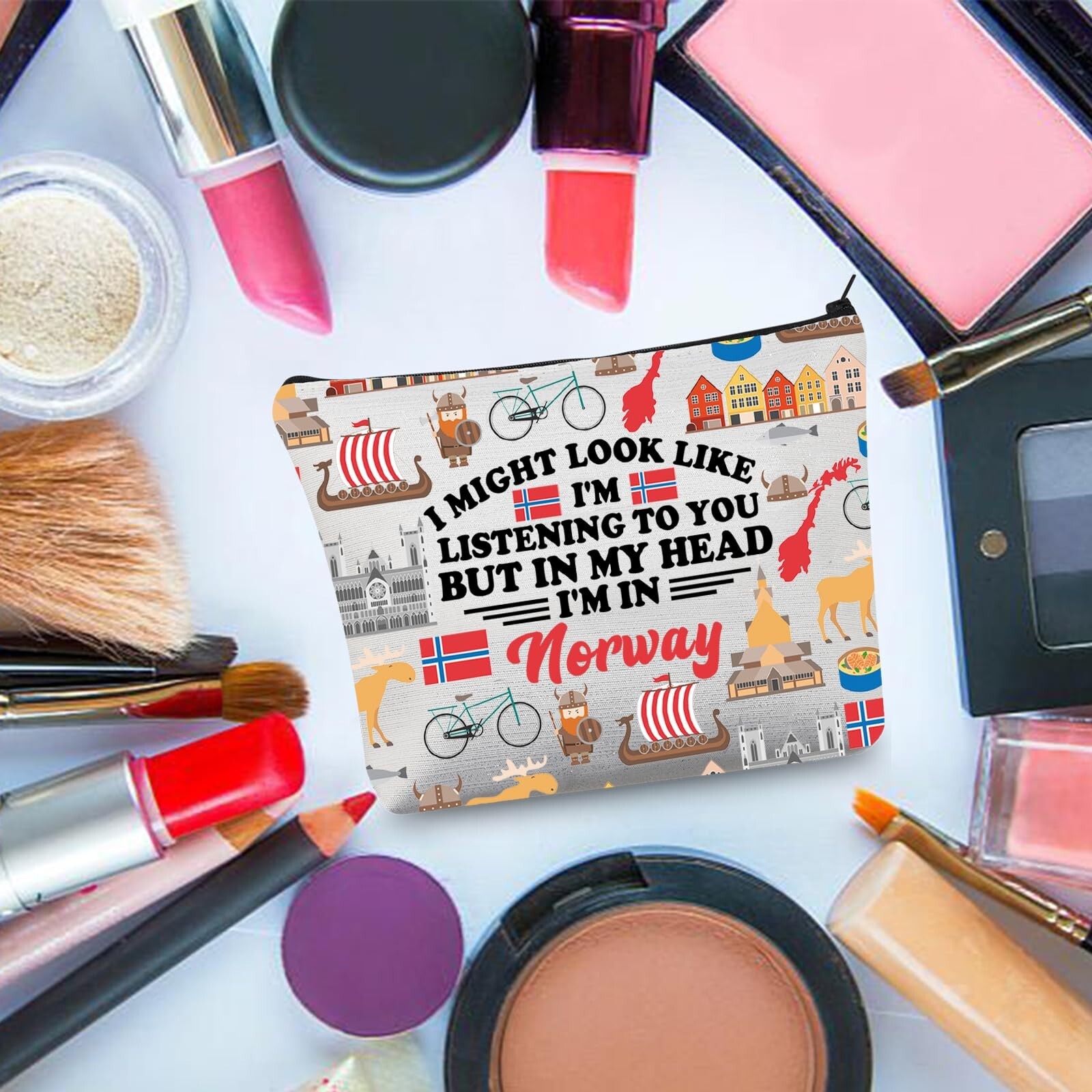 BDPWSS Norway Travel Makeup Bag Norwegian Gift Norway Vacation Gift Scandinavian Gift Norway Lover Norway Trip Surprise Gift (Might Norway) Product Details Color: Might Norway Brand: BDPWSS MPN: cosmetic bag 1 UPC: Does not apply EAN: Does not apply Material Features: Reusable Material Type: Polyester Item Dimensions L x W x H: 9"L x 5.6"W x 0.39"H Brand Name: BDPWSS Age Range Description: Adult Color: Might Norway Water Resistance Level: Waterproof Closure Type: Zipper Bag with Norway Quote: I MIGHT LOOK LIKE I'M LISTENING TO YOU BUT IN MY HEAD I'M IN Norway. This cosmetic bag is a perfect gift for Norway Vacation, Norway Trip, Norway Travel. Material: Made of Soft Canvas Material, Strong Zipper, Waterproof Design, Double-sided printed. Size: 9.0" Width x 6.7" Height x 1.96" Depth. Great for holding all of your beauty products. Multifunctional: Portable makeup bag with large capacity for your mascara, lipstick, face cream, power bank, cell phone, sunglasses and other travel gadget. Great travel companion, either on a day out for errands, or for a trip across the country. A thoughtful present for your friends, sisters, relatives on Christmas, Birthday and Thanksgiving. We specialize in finding you the perfect makeup bag for any occasion (or no occasion at all)! 1.This cosmetic bag made of high-quality canvas is not only novel and unique in design, but also safe and practical with a strong zipper as a switch. 2.Multifunctional: Portable makeup bag with large capacity for your mascara, lipstick, face cream, power bank, cell phone, sunglasses and other travel gadget. 3.Easy to clean: Machine wash cold. It's recommended to line dry. Tumble dry will cause shrinking. 4.Package: Each product is in a transparent pouch, beautiful and convenient, very suitable for gift giving! 5.If you have any question, please feel free to contact us first, we will reply in 24 hours.