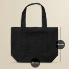 Description Elevate your everyday style with the Stylish Canvas Tote Bag, a perfect blend of fashion and functionality. Whether you're heading to work, school, or a weekend getaway, this versatile tote is designed to carry your daily essentials with ease. Introducing our versatile and eco-friendly 14oz Cotton Tote Bag – the perfect blend of style, sustainability, and functionality. Crafted with care from high-density organic cotton, this tote bag is designed to accompany you on all your daily adventures, whether you're heading to the grocery , gym, beach, or a casual day out. The sturdy construction of the tote ensures durability and longevity, making it a reliable companion for your daily activities. The natural organic cotton material not only adds a touch of classic elegance but also reflects our commitment to sustainable living. Say goodbye to single-use plastic bags and embrace an eco-conscious lifestyle with this reusable alternative. With its spacious interior, the multi-purpose tote provides ample room for your essentials, be it groceries, books, workout gear, or anything in between. The wide and comfortable handles make it easy to carry, whether in hand or over the shoulder. The timeless design and neutral color palette make it a versatile accessory that effortlessly complements any outfit or occasion. What sets our cotton tote apart is its adaptability. It's not just a bag; it's a canvas waiting for your personal touch. Customize it with pins, patches, or fabric markers to express your unique style. The simplicity of the design allows for easy integration into your daily life while serving as a blank canvas for your creativity. Make a conscious choice for the planet and elevate your everyday style with our multi-purpose cotton tote bag. Practical, sustainable, and stylish – it's more than just a bag; it's a statement of mindful living. Chic and Durable Design: The 14oz Organic Cotton Tote bags boasts a stylish canvas exterior that not only looks good but also withstands daily wear and tear. The timeless design complements any outfit, making it a fashion-forward choice or a functional carry solution for groceries and the farmers market. External Pocket: Stay organized on the go with the convenient external pocket. Perfect for storing your , keys, laptop, books or other small items, it provides quick access to essentials without rummaging through the main compartment. Pocket Dimensions at 8" x 8". Top Zipper Closure: Keep your belongings secure with the top zipper closure. Whether you're navigating a busy city or strolling through a park, this anti theft feature ensures that your valuables are safe and protected. Versatile Pack Sizes: Choose the pack size that suits your needs – 1, 3, 6, or 30. Whether you need a single statement piece or a bulk supply for events or corporate gifting, has you covered with our eco friendly totes. Spacious Interior: Despite its sleek profile, the interior of the tote is surprisingly spacious. Toss in your laptop, notebooks, water bottle, and more – there's room for everything you need throughout the day. Dimensions : 21" x 15" x 6