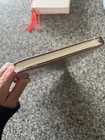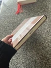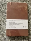 The cover looks like a tumbled leather look but I am not sure as it is covered with the plastic wrapping.