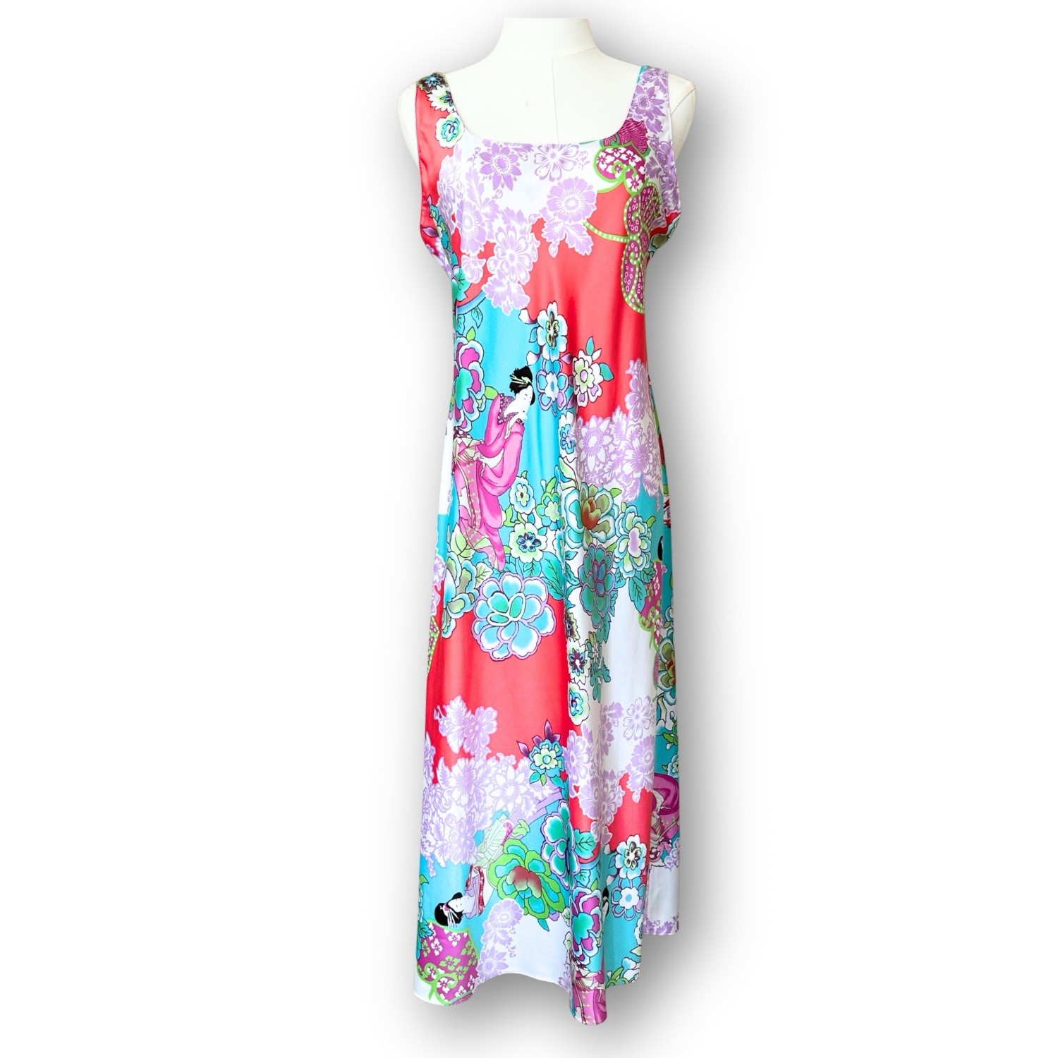 Notori Women's size MEDIUM Slinky Smooth Satin Long Kimono Robe & Gown Set. has elegant flowy sleeves riminiscent to a geisha girl's kimono Belted Pastel Purple, Pink, Aqua Asian / Geisha / Japan Floral Sleep Dress & Robe Belted Purple / Gold / Red / Pink Asian / Geisha / Japan Floral Sleep Dress CONDITION: excellent STYLE TAGS: Hollywood Glam, Bright, Cheerful, Happy MEASUREMENTS GOWN: length: 48" (can be longer or shorter by adjusting straps) armpit to armpit: 18" straight across waist: 18.5" straight across hips: 20" ROBE: length: 48.5" sleeve: 20" armpit to armpit: 22" Packaged with care I will ship it out within 2 business days Smoke free home Offers welcome.