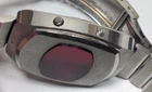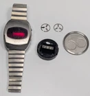Novus LED Red Lens Watch - 70's - For Parts or Repair Sold as-is for parts / repair. Contacts are pretty corroded as seen. I don't know what size battery fits this watch and do not have batteries for it.