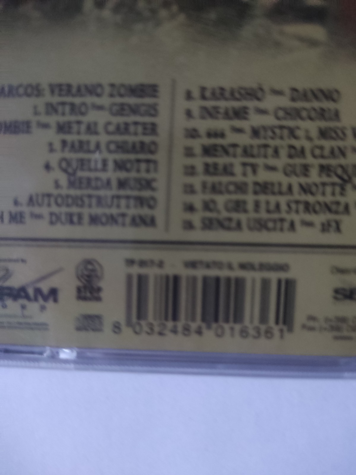 Noyz Narcos - Verano Zombie (CD, Album) SIGILLATO! MINT MINT SIGILLATO NUOVO DI ZECCA! Label: Traffik Records – none Format: CD, Album Country: Italy Released: 2007 Genre: Hip Hop Style: Horrorcore