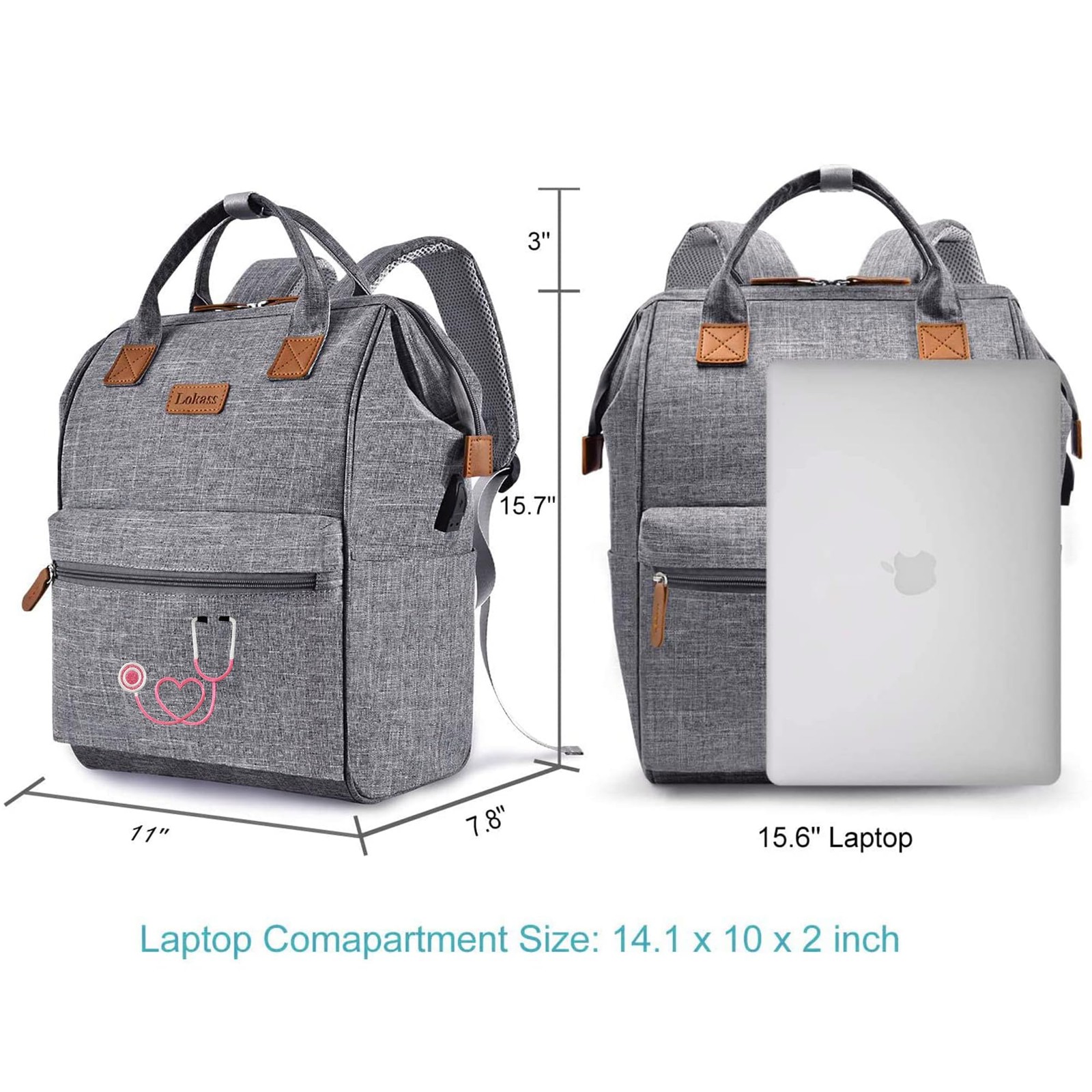 15.6 Inch Laptop Lunch Backpack with USB Port for Nurse Teacher Work or Travel