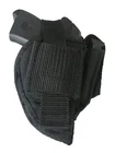 Pro-Tech Outdoors Nylon Gun Holster 1200 Denier Nylon Padded and Soft Lined Interior Inside Vapor Barrier - Helps keeps moisture off your gun Ambidextrous - Use Right or Left Handed Belt Loop and Metal Clip - Holster can be belted or clipped on pant Adjustable Retention Strap - Adjust to your gun Double Stitched at Pressure Points Extra Magazine Pouch Made on Front of Automatic Holsters Holster material provides a strong, good looking and comfortable long wearing holster. We strive for 100% customer satisfaction and encourage customers to review feedback. We have been selling holster for 10+ years and are very familiar with our items if you have questions. We have same day to next day shipping. Saturday and Sunday orders are shipped on Monday. Instructions to help assure for the correct fit of your holster: To remove or adjust the retention strap, simply use a butter knife or blunt object to push behind the retention strap to release strap from velcro. In doing this you can tighten the fit of the holster to your gun by pulling down and tightening the strap. Use this same technique to remove the strap and put the strap on the other side for left hand draw. To remove clip: Use butter knife or blunt object. Push the clip to one side as far as possible and put the blunt object in the corner and work the webbing over the corner of the lip of the clip. Once you have the corner over the lip you can slide the blunt object across the clip to move the webbing over the complete lip of the clip. When the webbing is completely over the lip, simply push up on the object you are using to push the clip off the webbing and place the clip of the other side.
