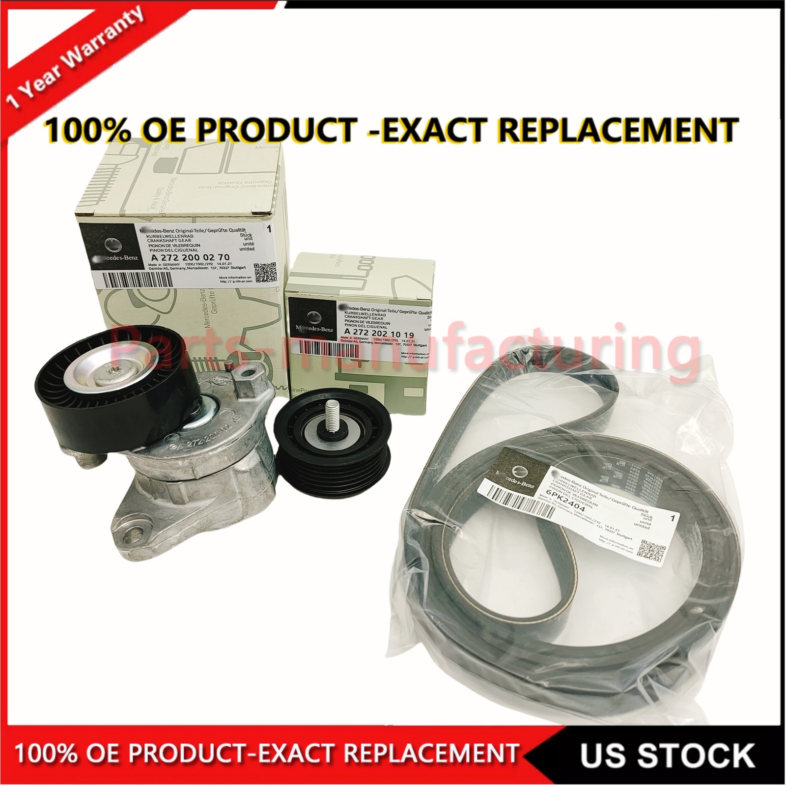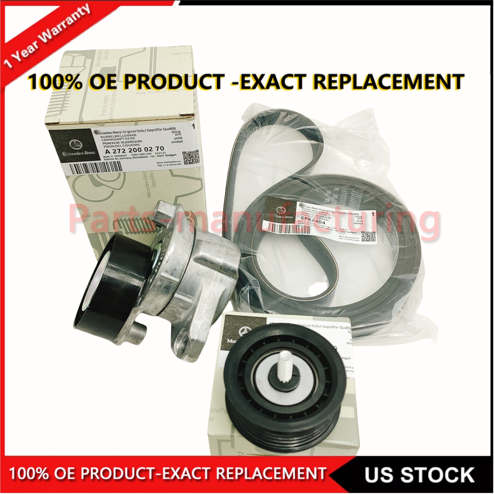 Product Description : "Please check your OE number before you buy this item and make sure it fit your " If you have any question, please contact us. Guaranteed to fit and meet the specifications of the OE parts being replaced maintenance-free experience Produced under strictly observed quality under highest ISO 9001:2000 international standards Advanced manufacturing technology ensures durability and optimum operation Specialized designs yield significant and noticeable improvements to your car engine ALL PHOTOS ARE OF THE ACTUAL ITEM. SHIPPING IS AVAILABLE! BUYER IS RESPONSIBLE FOR ALL SHIPPING & HANDLING FEES. YOUR PACKAGE WILL BE PROFESSIONALLY PACKAGED AND TRACKABLE. ***PLEASE MAKE SURE YOUR SHIPPING ADDRESS ON FILE WITH EBAY / PAYPAL ARE CORRECT PRIOR TO MAKING YOUR PURCHASE. ALL OF MY SHIPPING LABELS ARE CREATED ONLINE WITH EBAY / PAYPAL. CUSTOMER SATISFACTION GUARANTEED! PLEASE SEND ME AN EBAY MESSAGE OR EMAIL IF THERE IS ANY PROBLEM WITH YOUR ORDER. - BRAND NEW Parts in original packaging with tags - If you are unsure if this is the correct part for your vehicle, Please submit your VIN# and we will be happy to check compatibility THANK YOU FOR SHOPPING ● Features: ·High Quality ·Easy install ·Simple operation ·US Seller-Fast and Free Shipping ● Note: · Professional installation required · Please make sure it will fit your machine before purchasing it. · Please check pictures for more details. · If this item cannot work properly for you, please contact our Customer Service. We promise we will do our best to serve you. There are no instructions included in this package. Professional installation is highly recommended! ● Features: 100% brand new and high quality 100% Factory Tested ● Condition : NEW ● Manufacture Part Number : : A2722021419 A2722000270 6PK2404 ● Produce Parameter : For Mercedes E350 GLE GLK ML (It may fit other makes and models as well, please make sure by calling or emailing us with the VIN before making the purchase). Package included: 1 x OEM Belt Tensioner Idler Pulley Drive Belt Notice : 1. If you are not completely satisfied with your purchase, you may return it for a refund or 2.Please check the model before your purchase and compare the position of the screw hole In case of wrong purchase. 3.If you have any questions, please contact us by email and we will solve them for you. Returns Policy We offer a 30 days return policy from date of purchase on this item. Items must be returned in new condition with original packaging. 1. Returns must have all original packaging and accessories. 2. Opened or damaged merchandise are not eligible for returns/exchanges. Payment Delivery Details Return And Refund Feedback About Us Paypal Preferred. Local pickup NOT available at this time. 1.Free USPS First Class shipping. 2.Your item will be carefully packed and shipped within 2 business day after payment received. 3.Orders are not processed on weekend & holidays. 4. Package transit time: please expect 3-5 business days within US. Buyer need express mail service please contact us before placing the order. International transportation services are temporarily not available. 1.Please read the item description and check the pictures carefully before bidding. Return or refund is available only if item DOA or there's error in item description causing the item not fitting your need. In such cases, seller pays for all related shipping cost if any. 2.Returns are also acceptable if buyer purchased this by mistake and item still in good condition for reselling. Buyer is responsible for all related shipping cost. Feedback We maintain high standards of excellence and strive for 100% customer satisfaction!Feedback is very important to us. We request that you contact us immediately BEFORE you give us neutral or negative feedback, so that we can satisfactorily address your concerns. I f you're looking to buy in bulk or looking for a long term part supplier, please contact me directly. We will provide you the best products and service. Put off your doubts and fears and thusrest assured purchase. We offer 100% Customer Satisfaction , if you have any questions , please let us know and we will do our best to rectify the situation . We fully stand behind with all the items that we are selling ! When you receive your item , please leave positive feedback , we rely on you for our good name Payment Paypal Preferred. Local pickup NOT available at this time. Delivery Details 1.Free USPS First Class shipping. 2.Your item will be carefully packed and shipped within 2 business day after payment received. 3.Orders are not processed on weekend & holidays. 4. Package transit time: please expect 3-5 business days within US. Buyer need express mail service please contact us before placing the order. International transportation services are temporarily not available. Return And Refund 1.Please read the item description and check the pictures carefully before bidding. Return or refund is available only if item DOA or there's error in item description causing the item not fitting your need. In such cases, seller pays for all related shipping cost if any. 2.Returns are also acceptable if buyer purchased this by mistake and item still in good condition for reselling. Buyer is responsible for all related shipping cost. Feedback Feedback We maintain high standards of excellence and strive for 100% customer satisfaction!Feedback is very important to us. We request that you contact us immediately BEFORE you give us neutral or negative feedback, so that we can satisfactorily address your concerns. About Us I f you're looking to buy in bulk or looking for a long term part supplier, please contact me directly. We will provide you the best products and service. Put off your doubts and fears and thusrest assured purchase. We offer 100% Customer Satisfaction , if you have any questions , please let us know and we will do our best to rectify the situation . We fully stand behind with all the items that 