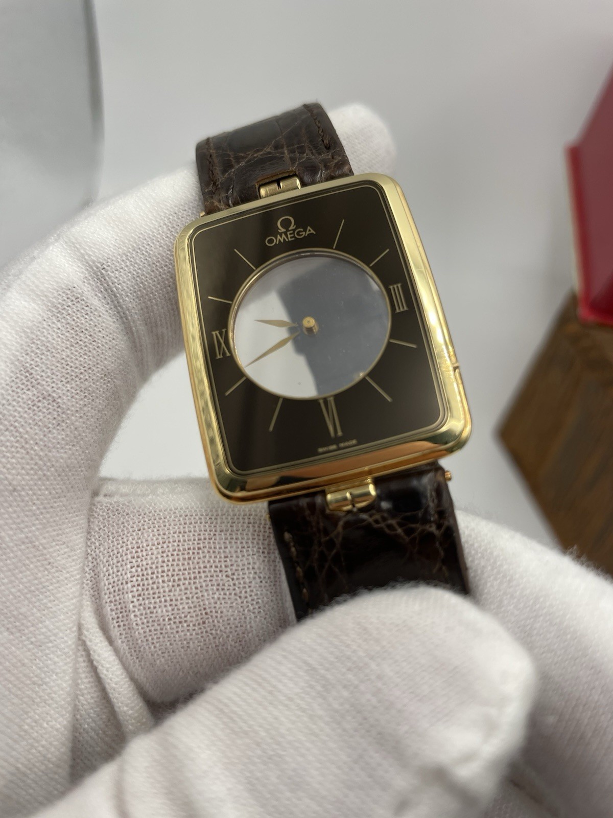 The OMEGA La Magique Scarface Model watch is a luxurious timepiece crafted from 18k gold, featuring stick indexes and a Swiss-made quartz movement. This vintage watch from the 1970s exudes elegance with its smooth bezel, sapphire crystal, and classic design. With a two-piece leather strap and a rectangular case shape, this wristwatch is ideal for both dressy occasions and everyday wear. This exquisite piece comes with a 2-year manufacturer warranty and is a standout addition to any watch collection. This is a watch you may even seen once in your lifetime! Great piece for collectors! It comes with original box and original crocodile band with it. Immaculate condition!! It works and will be coming with everything you seen in photos Please check my other listings!!