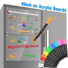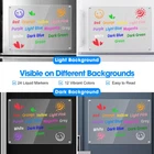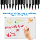 These Wet Erase Liquid Chalk Markers are specially designed for acrylic dry erase board, acrylic calendar for fridge, clear fridge white board, glass wall calendar or dry erase board. NOTE: the acrylic boards are not included in the package. These markers are also great for Halloween/ Christmas/ New Year/ Holidays painting on glass window/door/mirror or any shiny surface. Vibrant Colors, Easy to Read. 24 wet erasable markers in 12 vibrant colors are visible on both light background and dark background. Write Smoothly on Many Surfaces. These liquid chalk markers with 1mm (0.04 inches) fine points work great on acrylic writing board, glass writing board, glass window, car windshield, mirror, office glass door, allowing you to write on many smooth reusable surfaces instead of writing on paper. Easy to Erase with Wet Tissue. It is extremely easy to erase with just a piece of soft wet cloth/towel or wet tissue dipped with plain water, no ghosting, no smudge, no stains. Note: The marks are permanent on porous surfaces, so we recommend you use these markers on non-porous erasable surfaces such as smooth glass dry erase board, acrylic calendar for fridge, etc. What you will receive: totally 24 wet erase markers including 2 white liquid chalk markers, 2 dark blue liquid chalk markers, 2 light blue liquid markers, 2 light green liquid chalk markers, 2 dark green liquid chalk markers, 2 yellow liquid chalk markers, 2 orange liquid chalk markers, 2 red liquid chalk markers, 2 purple liquid chalk markers, 2 magenta liquid chalk markers, 2 light pink liquid chalk markers, and 2 grey liquid chalk markers.
