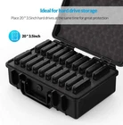 3.5in hard drive box Features: Easy and Reliable way to hold 20 x 3.5'' SSD / HDD. Built-in sponge interlayer can avoid your hard disk drive moving around. High Strength Engineering ABS plastic hard shell style and stable; Easy lock and open mechanism make it user-friendly. The portable hand-held design make it more convenient to carry. Production Information Dimension: 15.7 * 14.1 * 5.1 inch Content: 1 * ORICO Hard Drive Box Handheld design Suit for 3.5inch hard drive case Hand-held hook Practical hand-held hook allows you to easily put it to anywhere you want. The case can put 20 hard drives, you do not need to worry about the hard drive inside, no matter on the trip or stay at home. This hard drive protective box with high quality material which provide all-round protection including anti-drop, water resistant, shockproof and dustproof, a ultimate bodyguard for your hard drive, perfectly suit for photographers, directors, outdoor workers and more.