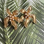 OSCAR DE LA RENTA HUGE HEAVY Enamel Flowers Stud Earrings Fashion 3 colors available - White/Gold /Green Size -height approximately 5.1cm Without paper holder and dust bag Shipping By USPS