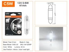 OSRAM C5W Festoon 41mm LEDriving 6000K White Car LED Signal Light Interior Lamp LEDri ving SL C5W replacement lamps offer a modern and intense light with a color temperature up to 6,000 Kelvin. These replacement lamps are suitable for all conventional C5W lamp bases. In comparison to standard lamps, these LED retrofit lamps use up to 80% less energy. Product Feature -Stylish 6000K cool white -They use 80% less energy -Improves brightness and visibility -For interior/door/reading/license plate light use -2 year warranty -Standard bulb - provides up to 5000 hours of light -The latest optical diffuser material for a uniform ligh t -External use is not road legal -Made in Italy Product Parameters 1.Brand Name: OSRAM 2.Voltage: 12 V 3.Package Include: 1 bulb 4.Model: C5W Festoon 41mm 5.To Fit: interior/door/reading/license plate light 6.Part Number: 6413DWP(41mm) 7.Base Model: SV8.5-8 Package 1 P iece Genuine OSRAM Bulb with Retail Box
