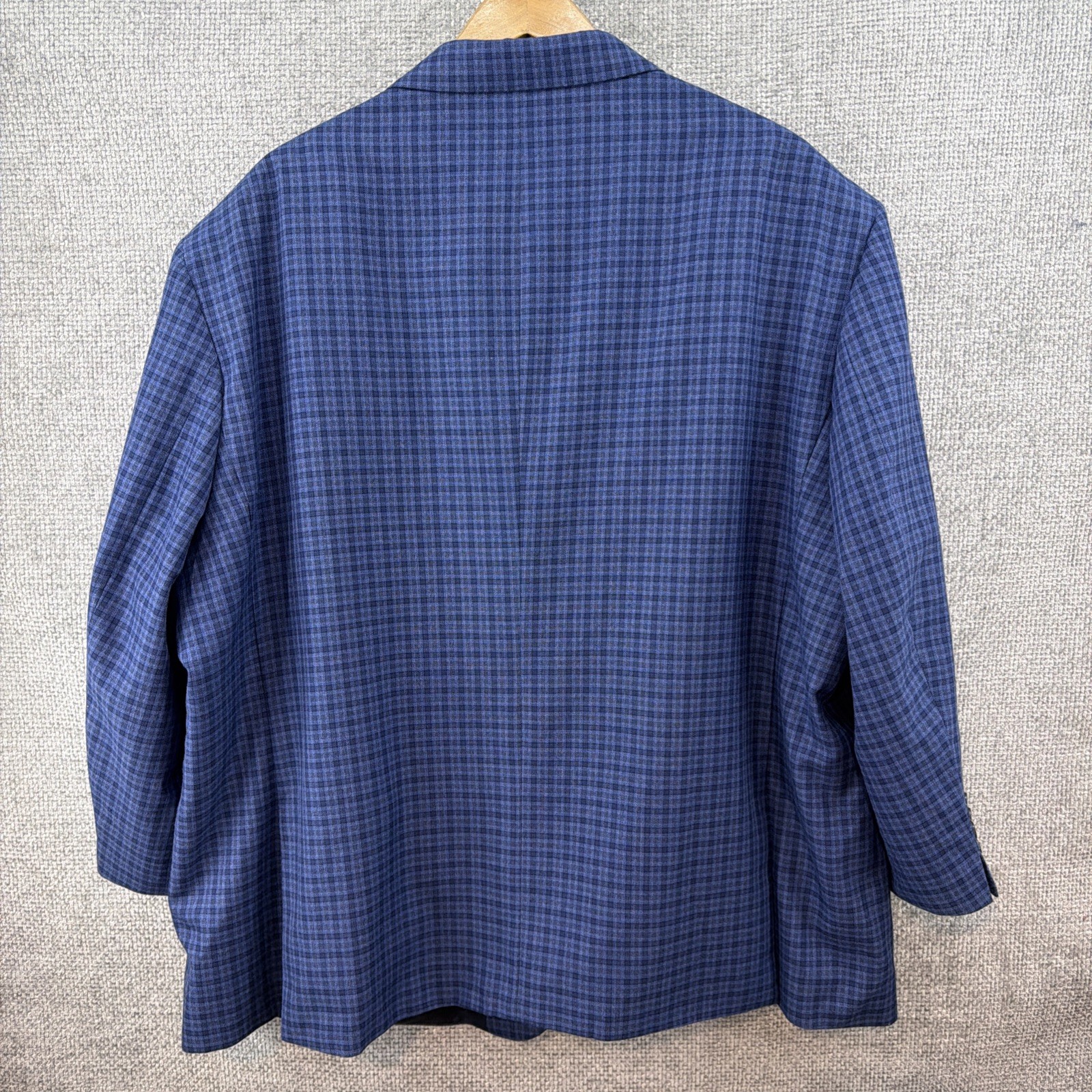 Oak Hill Blazer Mens 3XL 54/56R Blue Check Sport Coat Two Button Double Vent Small Paisley Printed Lining Front open pockets See Pictures for Details and Measurements No Returns