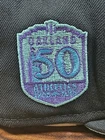 Crafted for the discerning fan, the Oakland A's New Era 59Fifty Fitted Hat celebrates the team's 50th Anniversary with a special patch commemorating the milestone. The hat itself is a classic piece of sports memorabilia, featuring a sleek black colorway that offers versatile styling for any casual or business attire. The fitted cap ensures a comfortable wear with a size of 7 1/4, catering to a precise fit. Its solid pattern and timeless baseball cap style make it an ideal accessory for various occasions, from a day at the ballpark to a casual outing. This New Era cap is a must-have for any streetwear enthusiast or MLB Baseball aficionado looking to top off their look with a piece of athletic heritage.