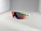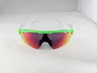 These are in great shape with very few marks on them. White rubber on arms is slighted stain but may be able to cleaned up. Crafted for the active individual, the Oakley Radar EV Path sunglasses merge style and function seamlessly. The green fade plastic frame offers a sturdy yet lightweight structure, perfect for outdoor sports or daily wear. Equipped with polarized Prizm Road Iridium lenses, these sunglasses provide unparalleled clarity and comfort by reducing glare and enhancing vision in bright conditions. 100% UVA and UVB protection ensures your eyes are shielded from harmful rays, while the standard fit assures a comfortable and secure experience. The Oakley Radar EV Path is not just a pair of sunglasses; it's an essential accessory for those who value performance and style in their outdoor pursuits.