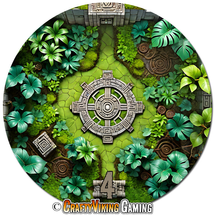 Lost City Set of 6 objective markers for Warhammer 40K and Age of Sigmar 4th Ed . This set features Lost City Ruins deep in the Jungle . Numbered 1-6 40 mm (marked center circle) for simple measuring plus 3 inches to the edge Total diameter 192 mm or 7.57 inches 2 mm thin neoprene (mouse-pad) material Non-slip rubber backing Enhance your gaming experience with these high quality attractive objective markers. No more guessing if a model is in range. Thanks for shopping & happy gaming! *Also available without numbers, just send us a message once you order for the no number designs.