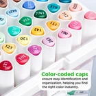 48 Ohuhu Alcohol Markers Brush Tip Double Tipped Art Marker Alcohol Markers Set for Artists Adults Coloring Drawing Sketch - Brush Chisel with Portable Storage Box Gifts BRUSH & CHISEL, DOUBLE TIPS, DOUBLE THE FUN: Widen your artistic horizons with the dual-tip marker design! Achieve seamless blending and create beautiful calligraphy strokes with the brush tip( 1-5mm), while the wide chisel tip( 1-5mm) allows for effortless filling, marking, and coloring. Get ready to experience the joy of artistic expression like never before! 48 VIBRANT & STUNNING COLORS: The rainbow is at your fingertips - choose from a whopping 48 brilliant colors and bring your ideas to life. This complete set (47 colors + 1 colorless blender) is designed to cater perfectly to beginners. From coloring to creating artwork, you’re sure to inspire artistic creativity. EASY-BLENDING & FAST-DRYING: Forget about blotchy, uneven coloring. High-quality ink, which is non-toxic and quick drying, blends seamlessly to achieve beautiful coloring effects, making it perfect for beginners. To prevent alcohol-based ink from bleeding through, put a plastic sheet under the paper or use Ohuhu marker sketchbooks or heavy-weight papers. Plus, please cover promptly after use for longer use. UNIQUE GRIP BARRELS & NO-ROLLING: Ergonomically designed with easy-to-hold triangular barrels, these markers are the top choice for beginners and teenagers. They stay firmly on the desktop without rolling, ready for your artistic endeavors. Better yet, the cap can be stored in the packaging box during use to prevent any unwanted loss. COLOR-CODED CAPS & PORTABLE STORAGE BOX: Ohuhu alcohol markers with uniquely color-coded caps make easy color identification and organization. No more searching or guessing! Plus, the bonus carrying case allows for convenient creativity on the go. Excellent gift choice for beginners and teenagers. Great Gift Idea for Beginner, Adult and Art Lovers This 48-pack alcohol marker features Fine and Brush dual tips with a comfortable triangle grip design. Alcohol-based ink dries quickly to leave no smudge and is easy to blend to create a wonderful color effect. Non-toxic and safe alcohol marker set for teenagers, beginners and art lovers. Create Your Own Masterpiece Choose from 47 vibrant colors to bring the rainbow to your fingers. Your drawing will shine with these markers. Great choice for drawing, coloring, illustration, portrait and painting. 1 colorless blender helps to create seamless blending, erase mistakes, add highlights and gradients.