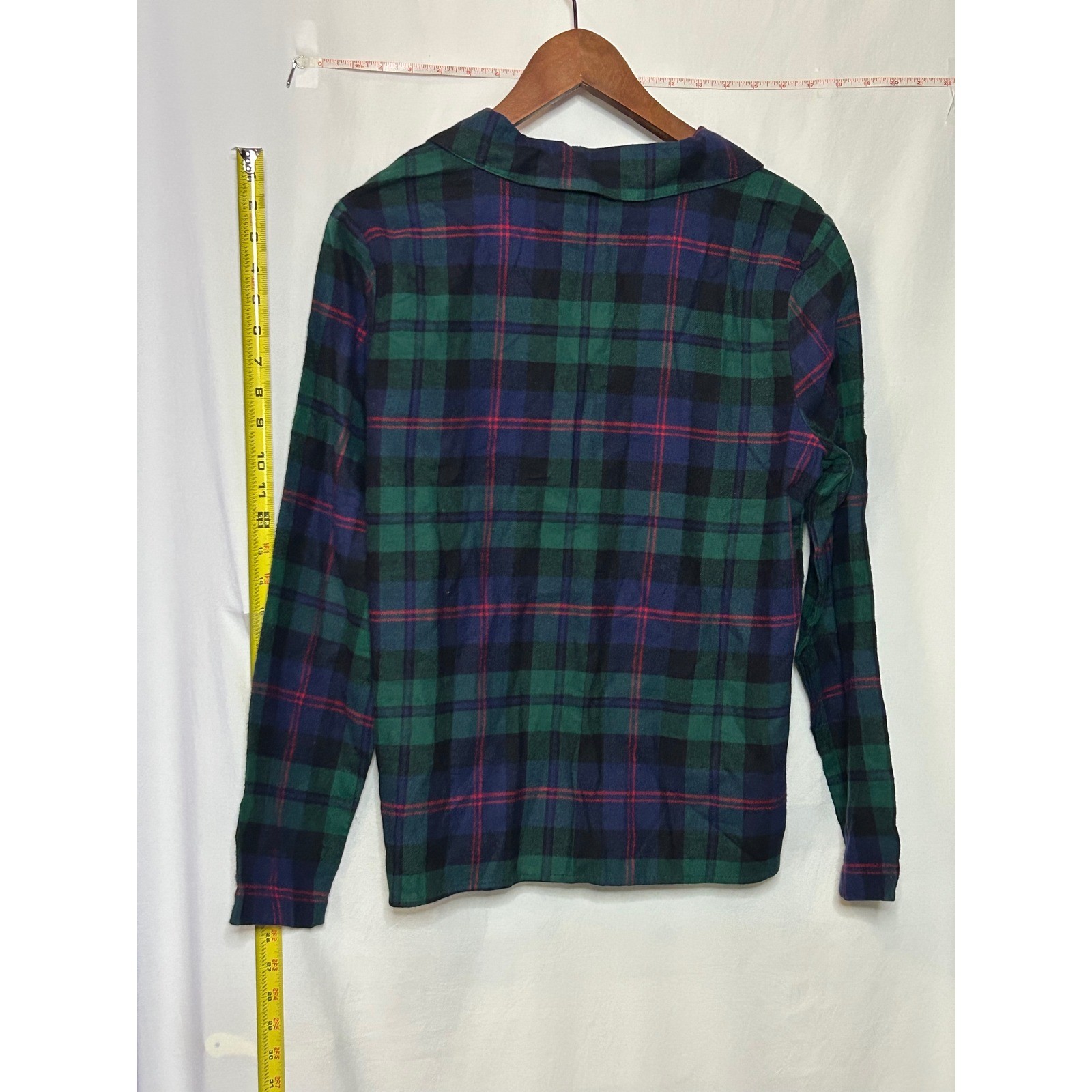 Comfy Pajama Top. Button Down Measurements: • Chest (pit to pit): 19 inches • Length (shoulder to hem): 25 inches • Sleeve Length (shoulder to cuff): 23 inches Type: Button-Up Department: Women Material: 100% Cotton, Cotton Neckline: Collared Sleeve Length: Long Sleeve Sleeve Type: Classic/Fitted Sleeve Pattern: Plaid Accents: Button Features: Pockets Fit: Classic Keywords: Old Navy women's shirt, Plaid button up shirt, Long sleeve top, Women's casual shirt, Cotton plaid shirt, Classic plaid design, Everyday wear shirt, Layering shirt, Comfortable women's top, Size M shirt, Blue green plaid, Red plaid accents