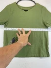This olive green polyester shirt for women features beautiful embroidered flowers and a relaxed fit, making it perfect for any casual occasion. The short-sleeved blouse has a V-neckline and a pullover closure, making it easy to wear. It comes in a size M and is machine washable for easy care. The shirt is ideal for summer and spring seasons and is suitable for travel, party/cocktail, and outdoor activities. The bohemian and nature-inspired theme of the shirt makes it a perfect addition to any wardrobe. Made in China, this shirt is a must-have for any fashion-conscious woman. Very good preowned condition with no issues. Please see all photos. For clothing specifically, see photos for all measurements and/or any issues if applicable. Pay close attention to the measurements as the size of the garment may quite possibly be different than the actual measurement(s) due to washing, shrinkage, or stretching as these are used clothes. The size in the title is the size on the tag of the garment. See photos for measurements of actual measurements as they may differ. ALWAYS CHECK THE MEASUREMENTS IN THE PHOTOS. This will remove any questions on measurements as well as always cover the possibility of human error in the listing(s) in the case of a typo or oversight. All clothing has been washed and comes from a smoke free environment. I am available for questions. I accept or negotiate reasonable offers. Have an amazing day. Thank you.