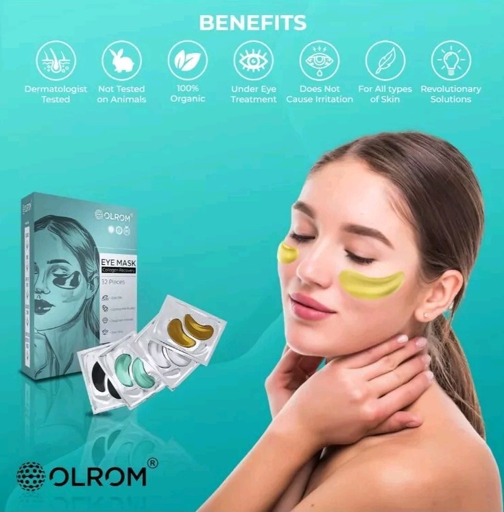 Olrom Eye Mask - 4 Kits Under Eye Patches: Gold Collagen Eye Pads Unopened Box.