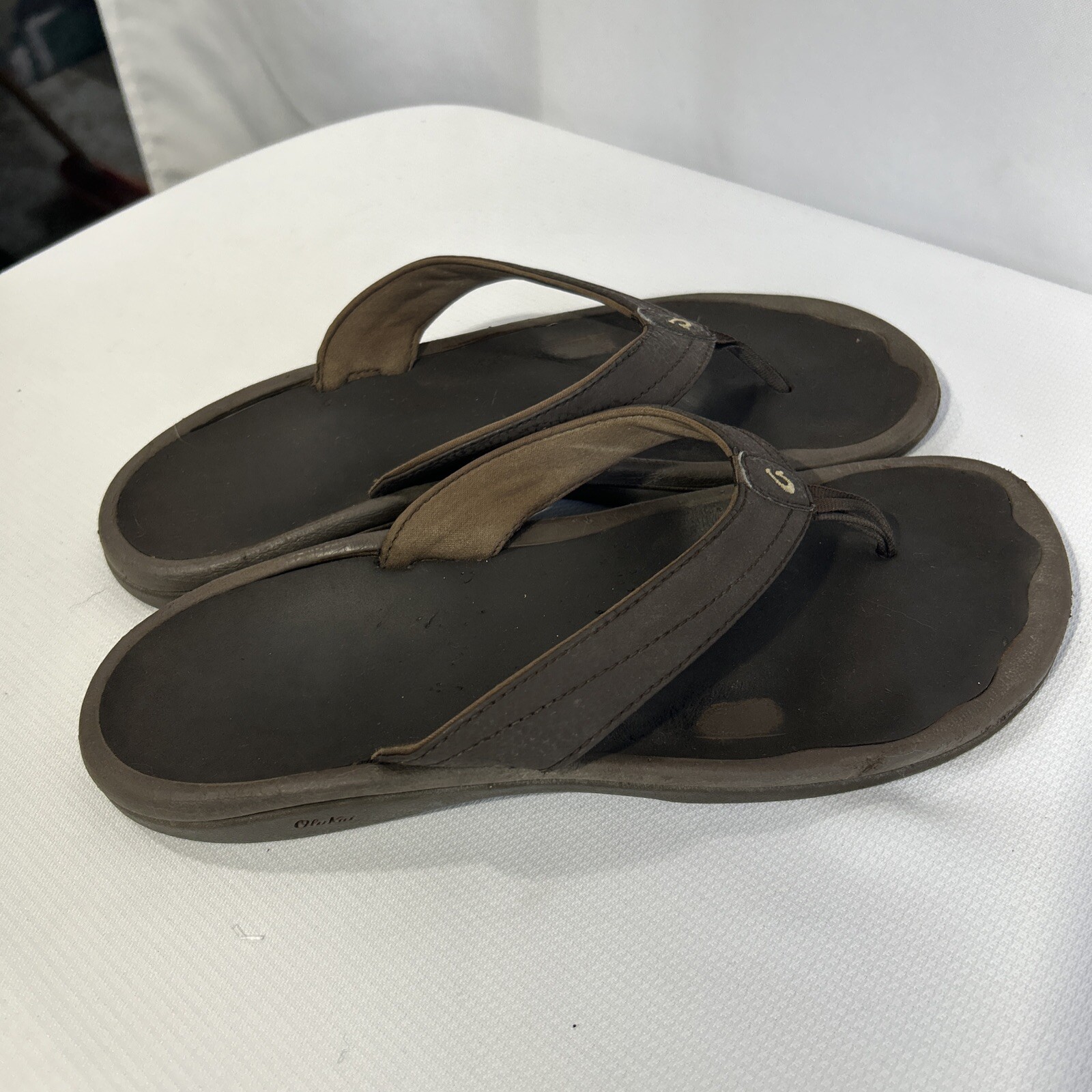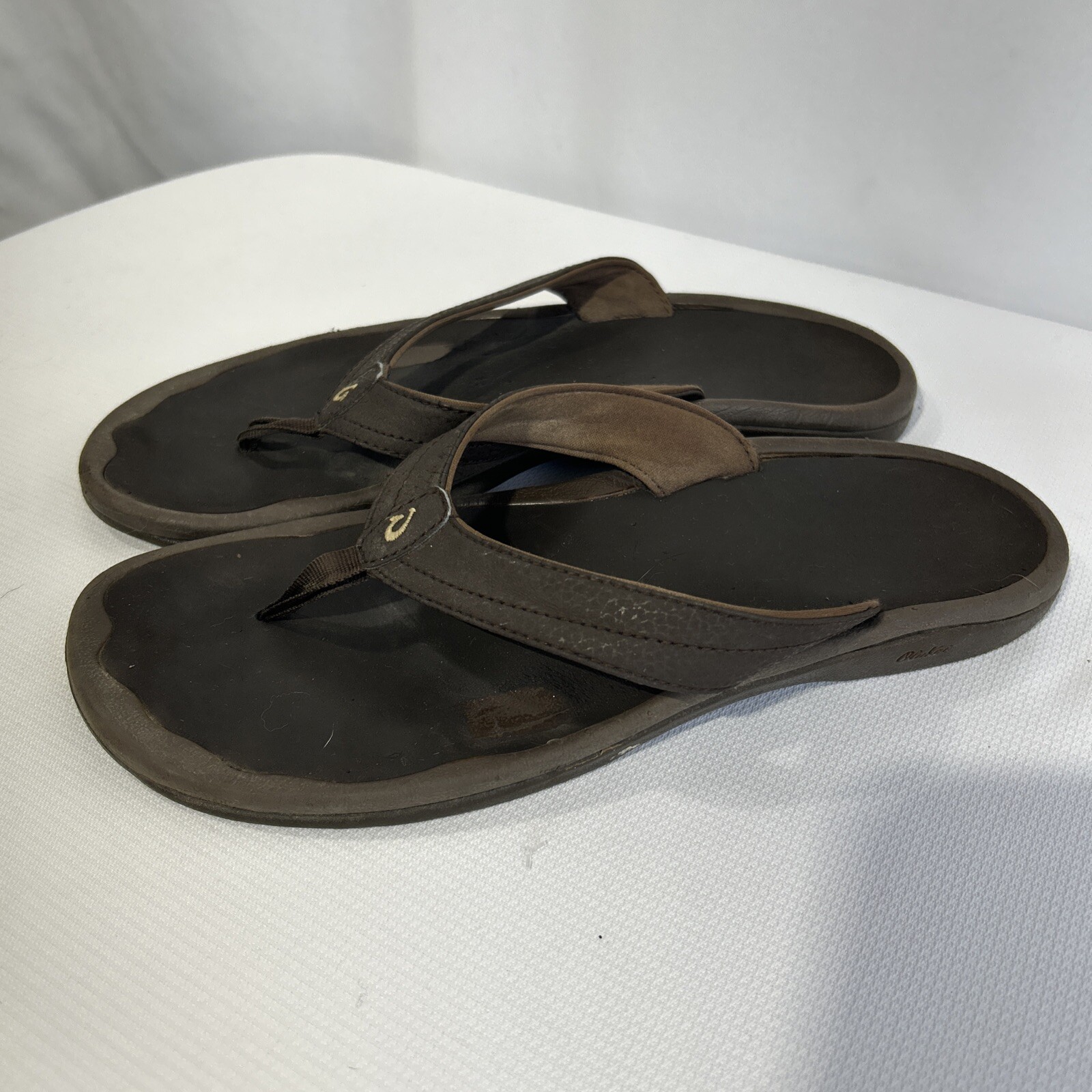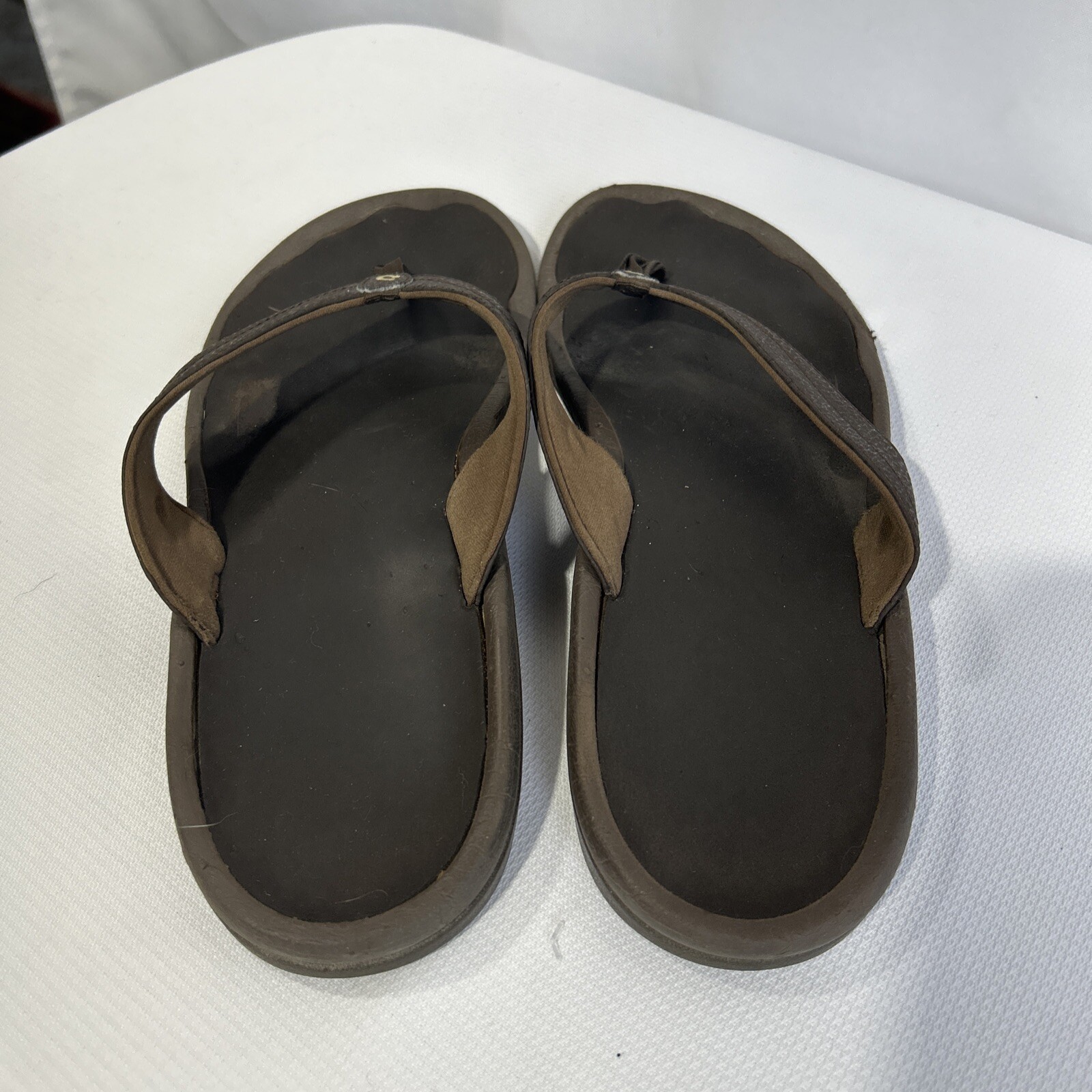 OluKai Ohana Sandal Womens Size 9 Thong Flip Flop Beach Slide Brown Leather See Pictures **