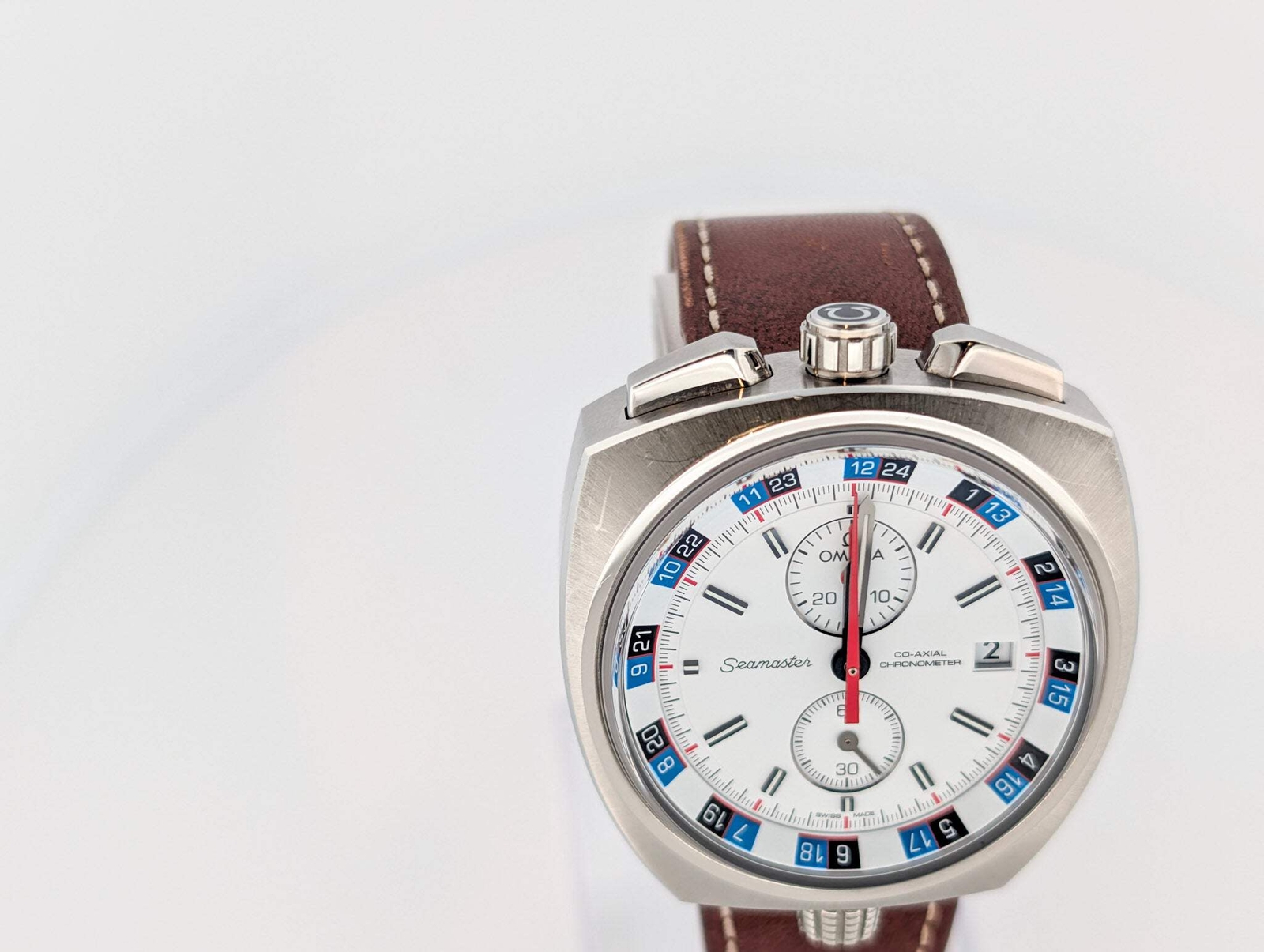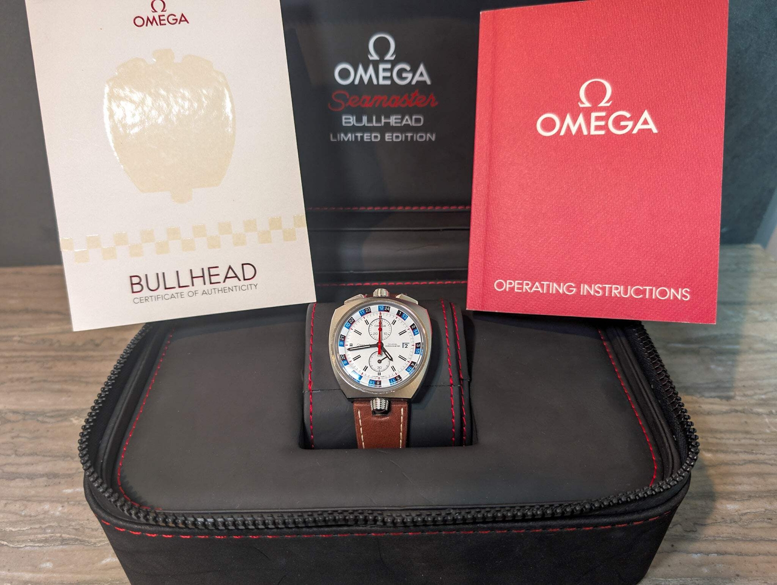 Omega Seamaster Bullhead Limited /669 Full Set Watch 225.12.43.50.04.001 The Omega Seamaster Bullhead Chronograph (Ref. 225.12.43.50.04.001) is a modern reissue of the iconic 1969 Bullhead, blending heritage with contemporary design. Originally introduced for rally timing, the Bullhead’s distinctive case shape, with the crown and pushers positioned at the top, was a functional innovation aimed at motorsport enthusiasts. Powered by the manual Calibre 930, the original Bullhead featured a rotating inner bezel and was produced in limited quantities, making it a rare collector's piece. The 2016 Bullhead honors was a limited run of 669 this history while introducing updates for today’s wearers. This model stands out with its white dial, white sub-dials, red seconds hands, and a striking blue and black box pattern on the rotating bezel. Its brown leather strap complements the bold dial design, providing a vintage-inspired aesthetic. The ergonomic "bullhead" case ensures ease of use, while the modern Calibre 3113 automatic movement offers precision and reliability. With its unique design and rich motorsport heritage, this reissue is a striking addition to Omega’s Seamaster collection. Condition: The watch comes with full box and papers. The watch is in good condition but is pre-owned with marks are present on the case, case back, band, and clasp, the watch can be polished upon request. Marks are most noticeable on the case at 10 and 7 as well as the side of the case. The band has some sign of wear on the edges, we can assist you in sourcing a new one if desired. Additional photos are available upon request, and all images shown are of the actual watch being sold. Omega Seamaster Bullhead Limited /669 Full Set Watch 225.12.43.50.04.001 The Omega Seamaster Bullhead Chronograph (Ref. 225.12.43.50.04.001) is a modern reissue of the iconic 1969 Bullhead, blending heritage with contemporary design. Originally introduced for rally timing, the Bullhead’s distinctive case shape, with the crown and pushers positioned at the top, was a functional innovation aimed at motorsport enthusiasts. Powered by the manual Calibre 930, the original Bullhead featured a rotating inner bezel and was produced in limited quantities, making it a rare collector's piece. The 2016 Bullhead honors was a limited run of 669 this history while introducing updates for today’s wearers. This model stands out with its white dial, white sub-dials, red seconds hands, and a striking blue and black box pattern on the rotating bezel. Its brown leather strap complements the bold dial design, providing a vintage-inspired aesthetic. The ergonomic "bullhead" case ensures ease of use, while the modern Calibre 3113 automatic movement offers precision and reliability. With its unique design and rich motorsport heritage, this reissue is a striking addition to Omega’s Seamaster collection. Condition: The watch comes with full box and papers. The watch is in good condition but is pre-owned with marks are present on the case, case back, band, and clasp, the watch can be polished upon request. Marks are most noticeable on the case at 10 and 7 as well as the side of the case. The band has some sign of wear on the edges, we can assist you in sourcing a new one if desired. Additional photos are available upon request, and all images shown are of the actual watch being sold. × × × × × × × × × × × × × Buy now and save! Shipping info Click the Shipping & Payments tab above the listing description for more info Click the Shipping & Payments tab above the listing description for more info! Additional delivery notes PICK UP OPTION Sorry, our items are NOT available for pick-up. PAYMENT Immediate payment is required upon selecting "Buy It Now" or upon checking out through the cart. We accept payment via U.S. PayPal accounts and all Major Credit Cards, Debit Cards & Google Pay. We are legally required to collect sales tax in those states and localities where we maintain a physical presence (nexus). The applicable amount of sales tax charged to an order will be calculated based on the shipment destination's state and local sales tax laws. Thank you for shopping with us on eBay! Additional Information No additional information at this time Ask seller a question You might also like Audemars Piguet Edward Piguet 25987BC Box & Papers Watch Rolex Sky-Dweller Unworn 42mm Box & Papers Rose gold Chocolate Dial Oyster-Flex Vacheron Constantin 1954 Cioccolatone Toledo Ref 4822 Rare Watch Box and Paper Rolex Datejust W/ Stickers Box Papers Blue Dial Jubilee 36mm Watch 126200 Contact To contact our Customer Service Team, simply click the button here and our Customer Service team will be happy to assist. Ask seller a question © Watch Them Tick Shipping & Payments Click the Shipping & Payments tab above the listing description for more info Payment Accepted Payment Methods Immediate payment is required upon selecting "Buy It Now" or upon checking out through the cart. We accept payment via U.S. PayPal accounts and all Major Credit Cards, Debit Cards & Google Pay. We are legally required to collect sales tax in those states and localities where we maintain a physical presence (nexus). The applicable amount of sales tax charged to an order will be calculated based on the shipment destination's state and local sales tax laws. Thank you for shopping with us on eBay! Returns Returns are accepted Items must be returned within 14 days of the auction ending Buyer will pay for return shipping. eBay integration by