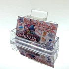 Slatwall Clear Plastic Business Card Holder Display Stand Desk Rack Available Colors: Clear Overall Dimensions: 3 3/4"w x 2"h x 3/4"d Pocket Dimensions: 3 11/16"w x 3/4"d Pocket Capacity: Approx. 30- 40 business cards Return Policy 30 Day Return Policy: By purchasing our product you are agreeing to our return policy, so please read! Perfect returns (NO used merchandise) on stock items are accepted within 30 days of delivery. Any visual appearance that the product is used will result in 00 refund. All returns are subject to a 20% inspection, re-boxing and restocking fee. All returns must be repacked and returned in their original packaging for protection. (MUST return on pallet if received on Pallet) Packages being returned should be insured by you for your protection No credits are issued on shipping costs. Absolutely no returns accepted on custom order displays, including orders with custom text, imprinting or graphics