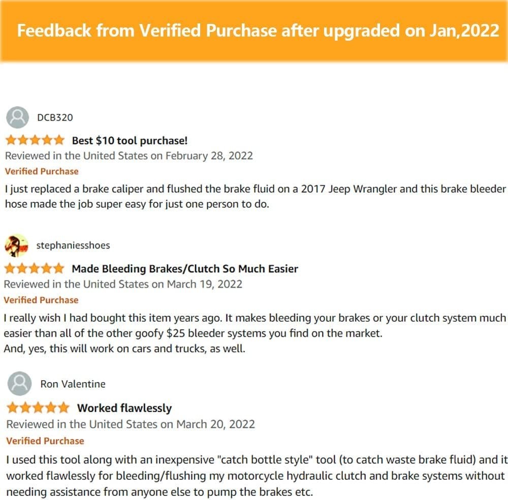Brake Bleeder Hose- One Way Check Valve Tube Bleeding Tool Kit for Motorcycle Clutch 【Material】: Aluminum body to resist corrosion from brake fluid,using soft tube for easy releasing or loosen 【One Way Check Valve 】Prevents air being drawn into the system 【Easy to connect】:Simply and easy to connect with the clips to motorcycle clutch for bleeding. 【Easy to bleed 】: Bleed motorcycle brakes fluid fastly with this brake bleeder hose. 【Remark】:This motorcycle brake bleeder kit looks simple, but really a good helper to get the brake fluid out.