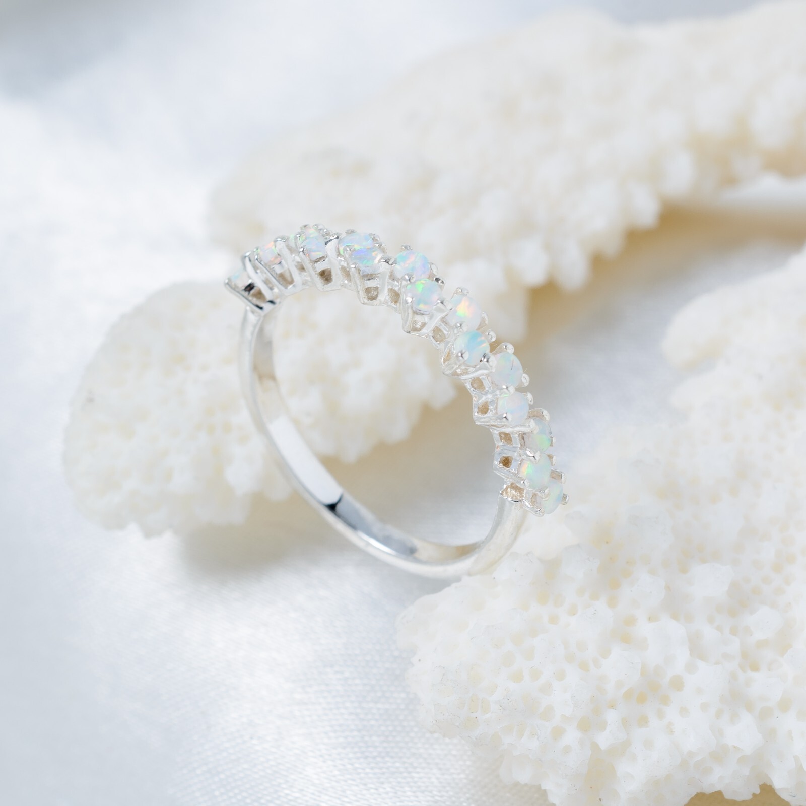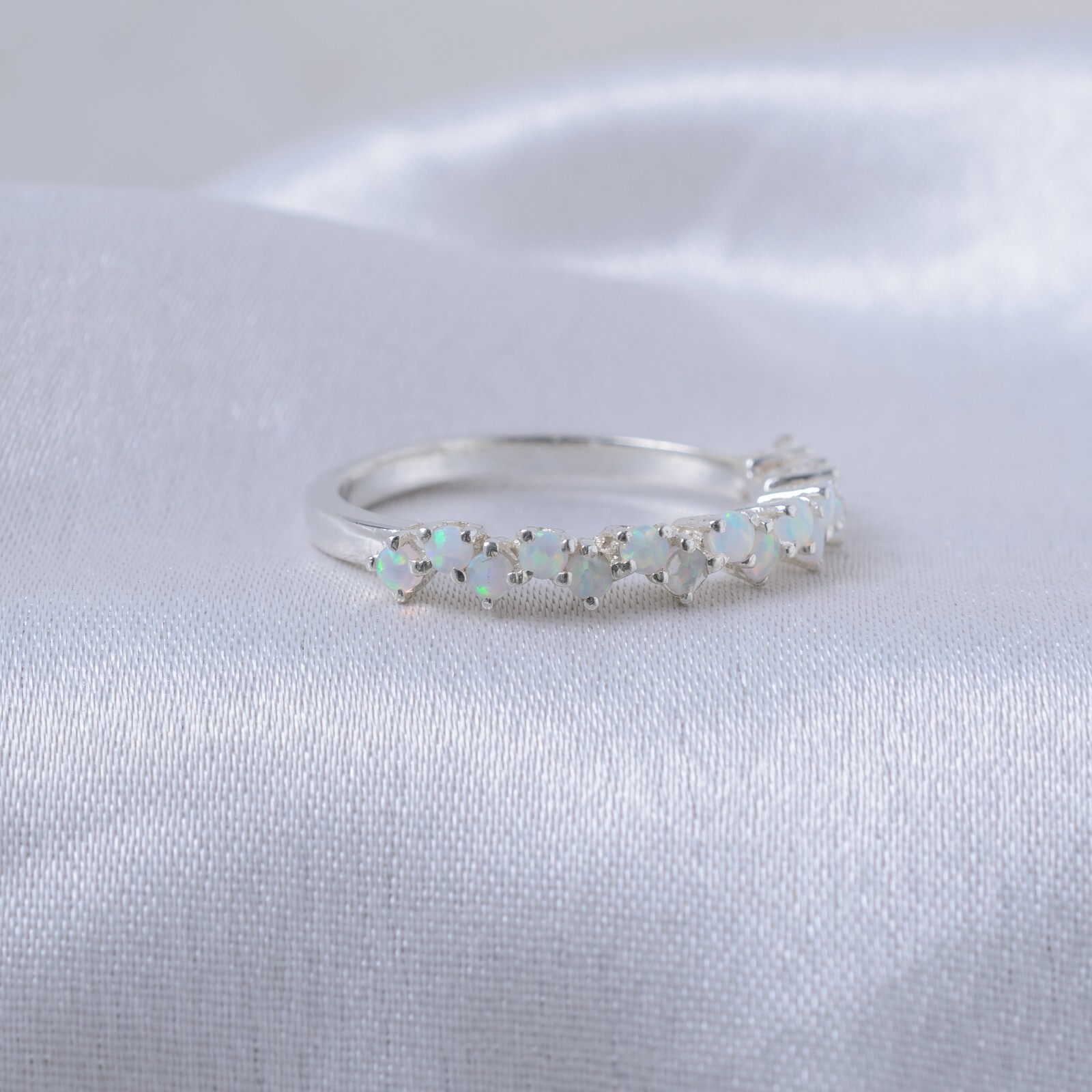 This is a handmade antique-style ring featuring a round black onyx main stone set in 925 sterling silver. The band is curved and adorned with simulated diamonds, perfect for occasions like engagement, weddings, or anniversaries. It has a vintage Art Deco design, can be personalized with engraving, and is stackable. Made in India, this unique ring is a beautiful alternative band that exudes artistry and love. Opal Wedding Band 925 Sterling Silver Half Eternity Stacking Band For Valentines Main Stone - opal Stone Shape - Round Stone Color - White Second Stone - PERSONAL HELP : IF YOU STILL NEED ANY CLARIFICATION ON THE PRODUCT OFFER,YOU CAN LET US KNOW ON A PRIVATE MESSAGE AND WE WILL ASSURE YOU OF ALL POSSIBLE HELP NEEDED TO PURCHASE THE PRODUCT. FEEDBACK :- YOUR FEEDBACK IS VERY IMPORTANT TO US AND IF IT POSITIVE, THIS WILL INCREASE YOUR NOBILITY AND ALSO IT WILL BE HIGHLY APPRECIATED FOR OUR SUCCESS. HOWEVER, IF YOU ARE DISSATISFIED WITH OUR PRODUCT AND SERVICE,PLEASE CONTACT US PRIVATELY BEFORE LEAVING NEGATIVE / NEUTRAL FEEDBACK TO RESOLVE THE PROBLEM. Jewelry Care Instructions:- 1. Keep it away from wood Avoid leaving your jewelry on chemically treated surfaces or wood, which can stain or speed up the tarnishing process. 2. Put it in a Ziplock Bag Over time, your jewelry is exposed to moisture and air which eventually tarnishes it. Put it in a ziplock bag and squeeze out all the air before sealing 3. Store Your Silver With Chalk Chalk absorbs moisture, or if you find that dusty, invest in some dehumidifiers or silica packs. 4. Keep your jewelry dry and away from skin care Don't put on your jewelry, then apply lotion, perfume or hairspray. Never wear silver jewelry while swimming or going to the sauna. About Rose Gold and Gold Plating:- Rose gold and gold plating is flash e-coting. It is not durable. If you use perfume, lotion, soap and water, the gold plated will be removed.