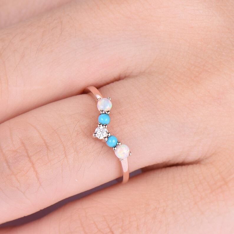 Customized:YesColor:RoseGemstone Clarity Grade:Eye CleanMain Stone Color:WhiteTheme:BeautyColored Diamond Intensity:Very LightMain Stone Shape:RoundHandmade:YesType:RingCut Grade:ExcellentRing Size:7Metal Purity:925Sizable:YesMaterial:Gemstone, MetalMain Stone Width:2 mmSetting Style:ProngCertification:We can provide Certficate as upon your requestFeatures:Adjustable, StackableMetal:Sterling SilverVintage:YesBrand:Khowal JewelsDiamond Clarity Grade:NAMain Stone Depth:2 mmStyle:BandShape:RoundPersonalize:YesNumber of Gemstones:Same As PictureMain Stone Creation:NaturalMain Stone Treatment:Not EnhancedCountry of Origin:IndiaAntique:YesMain Stone Length:2 mmSigned:NATotal Carat Weight:1Secondary Stone:Turquoise, MoissaniteEra:Art Deco (1915-1935)Base Metal:SilverCountry/Region of Manufacture:IndiaOccasion:Anniversary, Birthday, Christmas, WeddingMain Stone:OpalNumber of Diamonds:NABand Width:1.5 mmDiamond Color Grade:NA