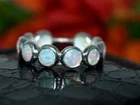 PRODUCT DESCRIPTION Opal Wedding Band Round Cut Full Eternity Band Opal Ring Gemstone Bridal Ring. Specification: Stone Name- White Opal Stone Creation - Lab Gown Ethiopian Opal Stone Size - 3 mm Stone Shape Round Shape Stone Cut - Cabochon Stone Color- White Birthstone Month- October Metal- 925 Sterling Silver Finished With Rhodium Method- Cast Personalization- Possible Occasion- Engagement Stone Style- Vintage Band Ring Size: We make rings from US 4 to US 16. (If you need smaller or bigger ring size, please ask me to resize) Country of Manufacture: India PAYMENT METHODS We accept Payoneer and the rest other modes of payment are also accepted. It is easy and safe for you to pay by credit cards, debit cards, bank transfers, and Payoneer account balances. Payment should be made within 2 days after the winning of the item. SHIPPING POLICY US shipping - Free Shipping International-Free Shipping Each item is individually packed securely with quality products to help ensure safe and undamaged delivery. We ship within 1 business day after payment is received. Delivery is generally within 10-15 days worldwide after shipping. In rare cases, it makes take up to 2-3 weeks for delivery depending upon the destinations and customs regulations in your country. All packages have a duly filled customs declaration form to avoid any delay in customs. RETURN POLICY Your satisfaction is of the utmost concern to us. Should you need to return an item, you can do so within 30 days of receipt of the item for a full refund. Return shipping charges are not reimbursable. All items must be in their original condition, not worn or altered. Please contact us if you would like to initiate a return, so that we may guide you through the process. We can be reached through the "Ask a Question" link on the listings. FEEDBACK We strive for 100% Customer Satisfaction and we always leave positive feedback to our buyers. Please help us maintain our business and give us a 5-Star rating. If you still think that you still can?t leave a 5-Star across the Board, please email us or call us and we assure you that your issue will be resolved immediately. We believe in solving the issues. Positive feedback represents our service, product quality, and dedication to customer satisfaction. Our future business depends on your satisfaction or positive feedback with a "5-star rating". Thank you !!