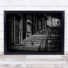 Oporto City Ribeira Codessais Stairs Alley Street Woman Cat Wall Art Print