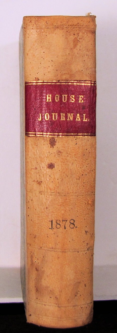 THE JOURNAL OF THE HOUSE OF THE LEGISLATIVE ASSEMBLY OF THE STATE OF OREGON. TENTH REGULAR SESSION, 1878. W. B. CARTER, STATE PRINTER., SALEM, OREGON, 1878. Half leather with green and red marbled boards. Some mild wear and soil stains to the cover. Secure binding with clean pages. About 8-1/2 x 5-1/2 with 745 pp., plus 59 pp. index. Rare!