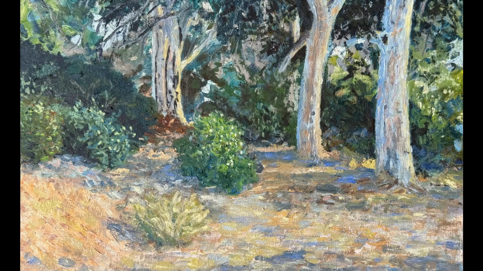 Original 12x16 Oil Painting – Impressionist Forest Landscape This one-of-a-kind oil painting on canvas captures the quiet beauty of a forest grove, inspired by Presidio Park in San Diego. Painted in an impressionist style, the artwork highlights the dappled play of light and shadow across tree trunks, foliage, and the forest floor. The painting is filled with textured brushstrokes, layered colors, and natural tones that bring the scene to life—making it a timeless piece of art for collectors and nature lovers. Details: Size: 12x16 inches Medium: Oil on canvas panel Style: Impressionist, Landscape Subject: Forest, Trees, Nature Original artwork (not a print) Ready to frame and display Why You’ll Love It: Adds warmth and serenity to any living space Ideal for fine art collectors and interior designers One-of-a-kind painting—only one available Makes a thoughtful gift for art lovers Inspired by a walk through Presidio Park, this artwork reflects the peaceful connection between nature and light, created with rich texture and depth. Bring the tranquility of the outdoors into your home. Don’t miss the chance to own this original impressionist oil painting on canvas—add it to your collection today! Frame is not included.