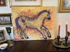 This is an original painting by artist Carol S Niebuhr from 2018, titled "Sweet Face Horse." The artwork is done on a 24x30 inch canvas using acrylic paint. It features a horse as the subject and is one of a kind. The painting showcases the artist's unique style and is part of the themes of art, animals, horse, and Indian.