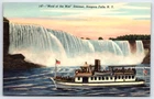 Original Old Vintage Antique Linen Postcard Steamer Boat Niagara Falls New York