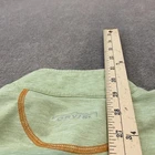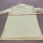 Previously worn pullover with fabric clean and color even throughout. No stains, holes, snags, or loose seams; zipper works smoothly. Tagless printed neck label, no original retail tags or packaging included. Brand: Orvis Product line: Orvis Trout Bum mens long-sleeve quarter-zip pullover shirt designed for casual wear and fishing. Color: Light green heather with solid appearance and contrasting orange flatlock stitching at shoulders, cuffs, and hem. Size: Mens Medium (M) with tagless printed neck label and Trout Bum branding at inner back neck. Material: 85% polyester, 15% cotton knit; soft, lightweight, and breathable performance fabric; made in El Salvador. Details: Mock neck with quarter zip front closure and zipper pull, long sleeves, straight hem with side vents, pullover construction, and printed Orvis fish outline logo at left chest and upper back. Additional info: Inner care tag lists RN# 70534.