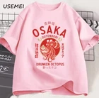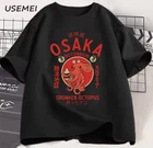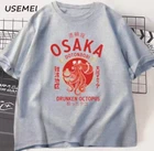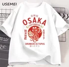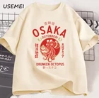 Osaka Dotonbori Drunken Octopus Graphic Men T Shirts Retro Japanese Style