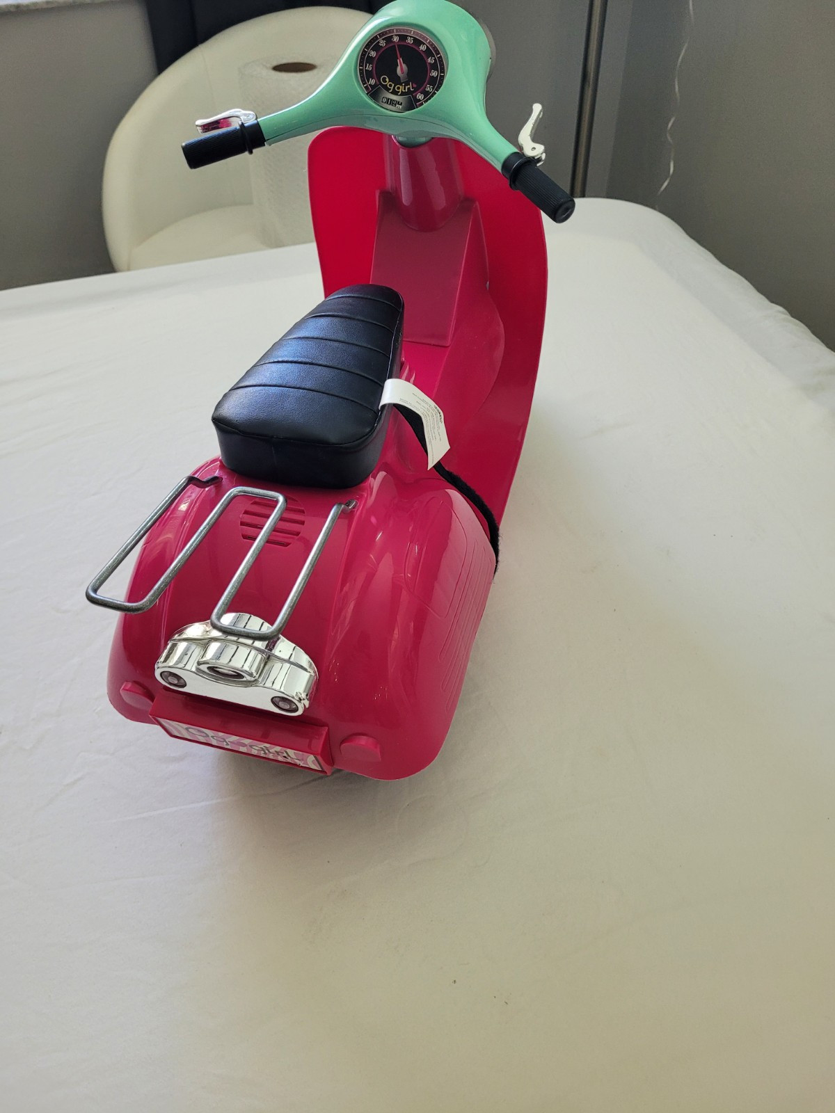 This cute Vespa scooter is perfect for any Our Generation doll fan! The bright teal and hot pink colors pop, and it’s in fantastic condition just like the photos show. The seller is super helpful, offering detailed descriptions and extra pics if needed. Fast shipping and great communication—highly recommend for doll playtime fun!
