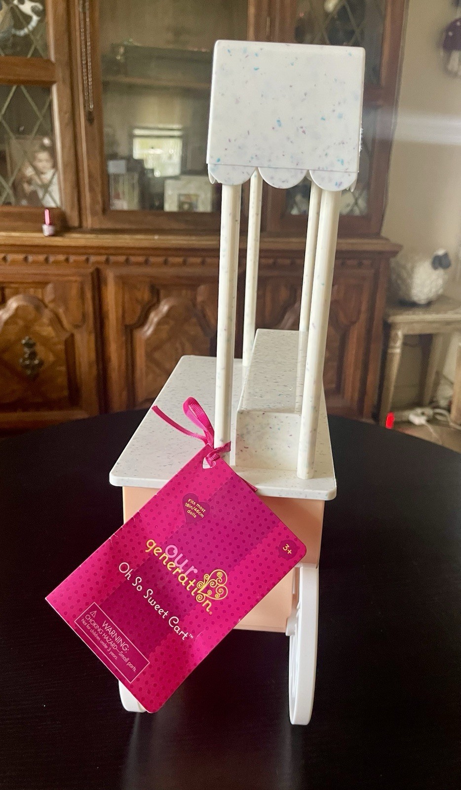 Brand New with tag Our Generation Oh So Sweet Cart DOES NOT COME WITH ACCESSORIES Perfect for dolls 18 inches tall, but honestly it’d even look cute as house decor for faux desserts. Like, who’s gonna know? lol. It’s 19x10 Sold out in stores Please see all images for more details and to ensure your happiness before purchasing :) 🌸Thanks for reading🌸 ⭐ JK CUSTOMS (We started selling in 2023 beginning with our handmade products.) 🧐 Make sure to read our reviews! We have made over 10,000+ sales in all of our stores combined! ☕ FYI- WE MAKE CUSTOM TUMBLERS! (message us for more details) 🛍️ Normalize Second Hand & Shopping Small! Stop by our store for an eclectic mix of funky retro finds, collectible treasures, clothing, accessories & more. 📫 We ship same or next day! ( INCLUDING Saturdays. ) 📦 WE REUSE BOXES!!! We can help save our planet one reusable box at a time! 🧡 We love our customers! Look out for freebies! We also send out offers & coupons!