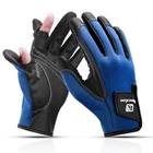 Product Description: Features: 1. Flip back thumb and index finger caps free your fingers to manipulate your fishing rod, phone, camera, touch-screen devices, without compromising performance, protection, and dexterity. 2. Stretch, breathable and windproof fabric back of the glove secures tight fit for best sensibility in any action and keeps your hands dry in light rain. 3. Adjustable wrist nylon clasp straps for any size wrist and fix your wrists will not fall off. Snug fit elastic cuffs keeps the gloves tight to your hands and keeps the cold wind out. 4. The 2 cut fingers design means you retain maneuverability and dexterity so these gloves are suitable for fishermen, anglers, hunters, photographers, bicycler, hikers, runners, shooters, outdoor athletes. 5. Palm anti-skid particle design, enhance friction, in fishing and riding will not skid. 6. Glove lining is made of high-quality warm-keeping fluffy material, which pays attention to hand feeling and keeps warm at the same time. Specifications: 1. Material: PU leather 2. Gender: Men, Women, Unisex 3. Type: Fishing Gloves 4. Size: S/M/L 5. Color: Black, Blue 6. Theme: Sports 7. Sport Type: Fishing, Hunting, Camping, Outdoor Sports 8. Features: Anti Slip, Durable, Breathable, Waterproof, Scratch Resistant Package Included: 1 Pair of Winter Fishing Gloves Notice: 1. Please allow 2-3% error due to manual measurement. 2. The colors may have different as the difference display, please understand. Contact US: Your satisfaction is our highest priority. Please contact us if you have any questions or requests about our products or service. We are always glad to assist you and stand by our products.