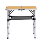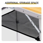 Introductions: Enjoy convenience and versatility anywhere with this Folding Camping Table. Designed with 3 adjustable height settings, this portable aluminum table adapts to your needs—whether as a low coffee table, a standard patio side table, or a taller utility table. Its foldable design with a built-in carry handle makes it easy to transport for camping, picnics, beach trips, BBQs, and more. A durable aluminum frame ensures long-lasting performance while staying lightweight, and the mesh net shelf underneath adds handy storage for keeping essentials close by. Features: 1. 3 Adjustable Height Settings: Switch easily between low, medium, and tall positions to suit different activities—from lounging with coffee to preparing food outdoors. 2. Portable & Foldable Design: Compactly folds with an integrated carry handle for easy transport and storage—ideal for camping, picnics, beach trips, or moving around your home and patio. 3. Durable Aluminum Construction: Built with a strong yet lightweight aluminum frame, supporting up to 110 lbs while resisting rust and outdoor wear. 4. Extra Storage Space: A built-in mesh net shelf beneath the tabletop provides convenient storage for magazines, utensils, tools, and more, keeping your space neat and organized. 5. Quick Setup & Easy Cleaning: Sets up in under a minute with no tools required. The smooth tabletop surface is easy to wipe clean for hassle-free maintenance. Specifications: 1. Tabletop Size: (24 x 15.7) in / (61 x 40) cm 2. Color: Wooden Pattern 3. Material: Aluminum Alloy 4. Weight Capacity: 110 lb / 50 kg Package Includes: 1 x Folding Camping Table
