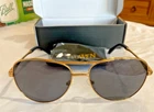 Ouwen aviator style goldtone rimmed sunglasses, new with tags original packaging Unisex aviator style sunglasses with storage box and cleaning cloth. You will receive the item in the photos. We can only ship to addresses in the US. Shipping is free! tags: sunnies, shades, glasses, eyewear, eye wear, fashion, eye protection, spring, summer