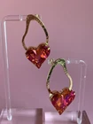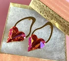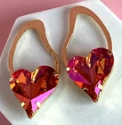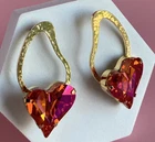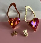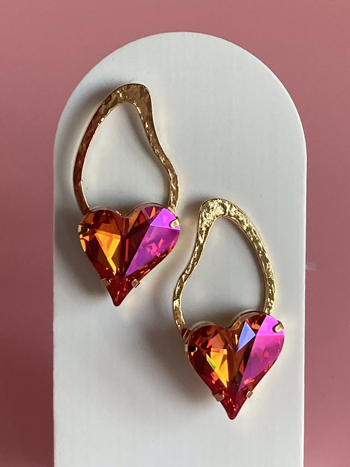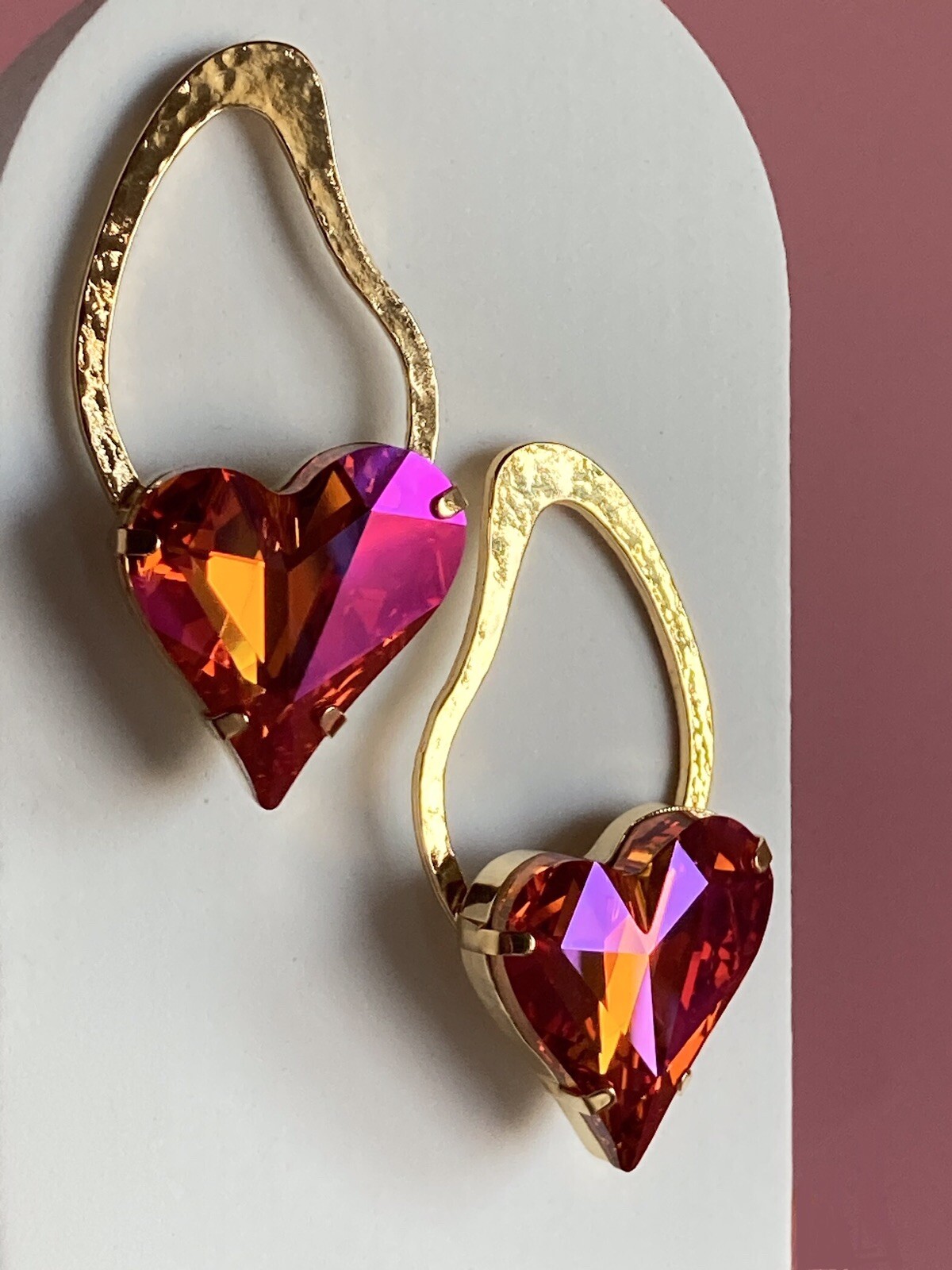 Handmade hammered asymmetric oval metal casting elements stud earrings with 27x25mm Sweet Heart Swarovski (4809) crystals Astral Pink (very rare find) with 12mm stainless steel posts. Each earring is a mirror reflection of another one. The base made of mazak, brass and yellow shiny gold plaiting. They are nice and heavy but still comfortable. They will come with butterfly style backing and an extra pair for heavy duty earrings Astral Pink crystal is a pretty warm orange color with a special semi-metallic fuchsia pink red coating reminds me of fire flames 🔥. Gorgeous color effect. I guarantee you won’t find them anywhere else. Weight: 11g each Material: Mazak, Brass Size: 58x27mm One of the kind earrings would be great for so many occasions especially Valentines As you might know Swarovski has decided to retain strict control of jewelry made with Swarovski crystals and will no longer be manufacturing beads and other components for hobbyists and small jewelry makers.